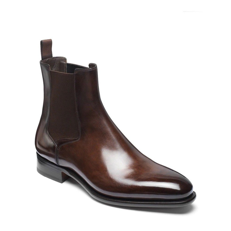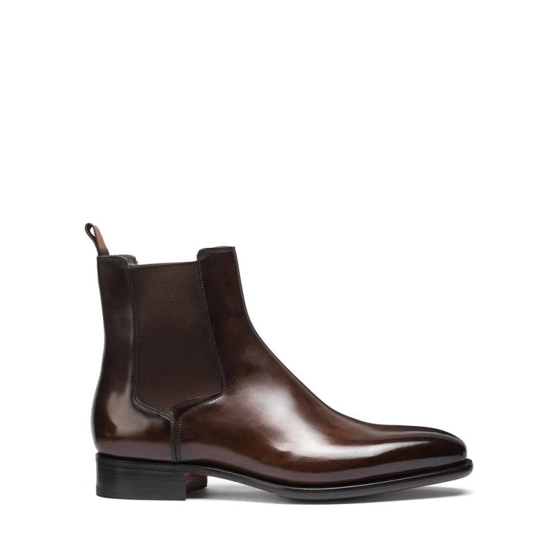 Nova Moda De Couro Do Plutônio Botas De Tornozelo Apontou Toe Sapatos De Salto Baixo Masculino Casual Estilo Retro Clássico Botas Chelsea Tv809