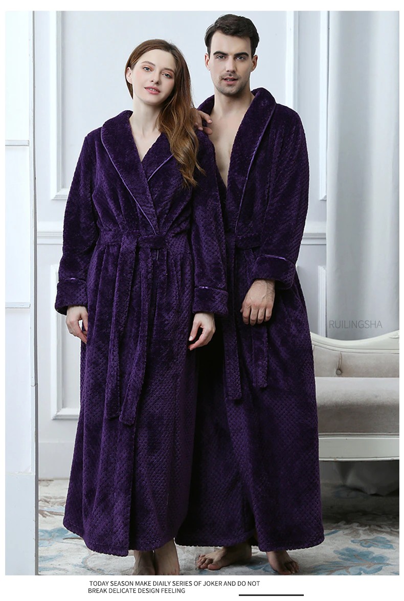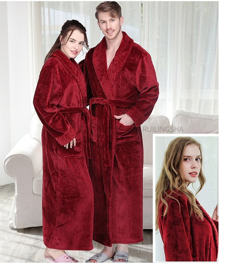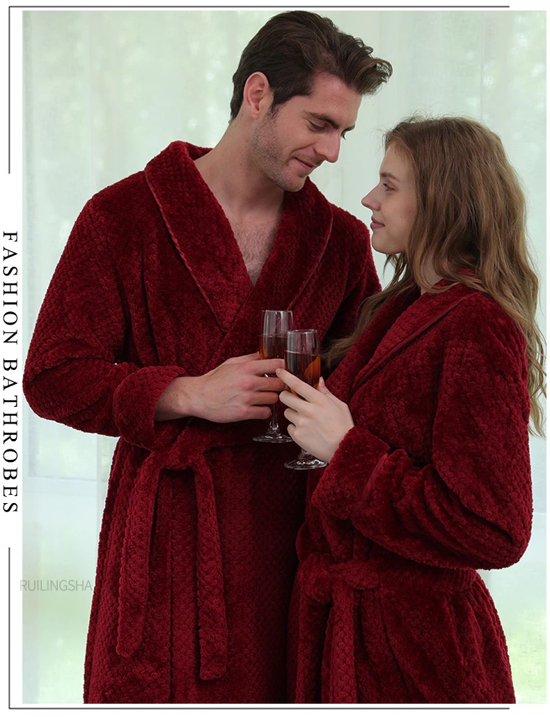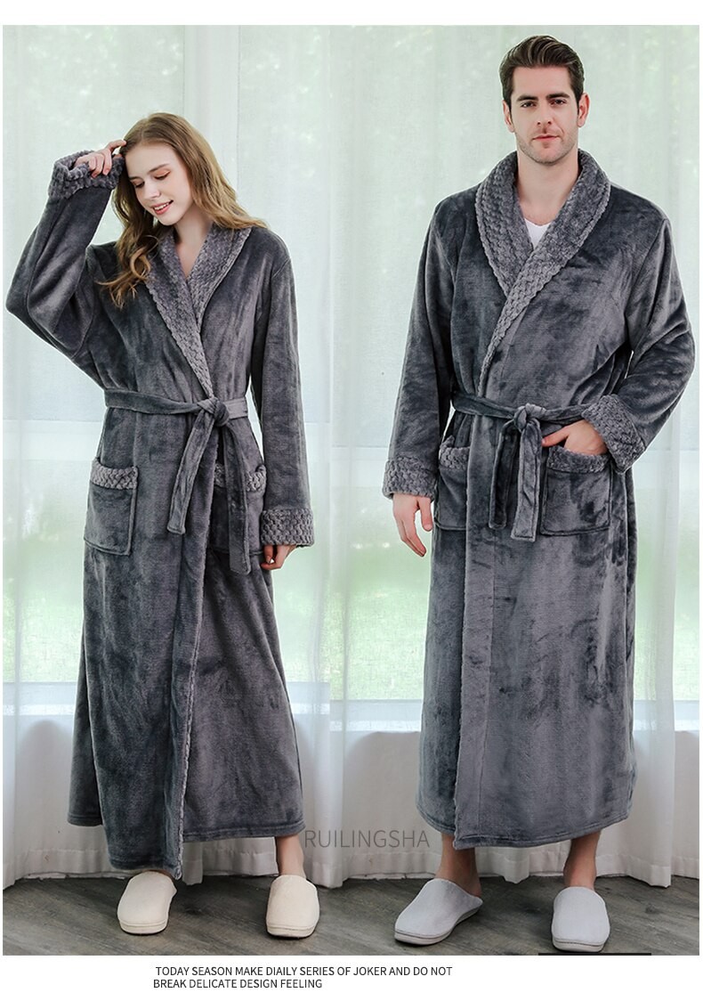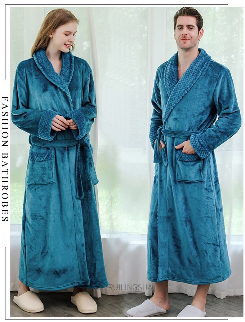 Roupão De Flanela Para Homens E Mulheres, Roupão Longo De Flanela Coral, Robe Feminino Com Robe Quente Para Dormir