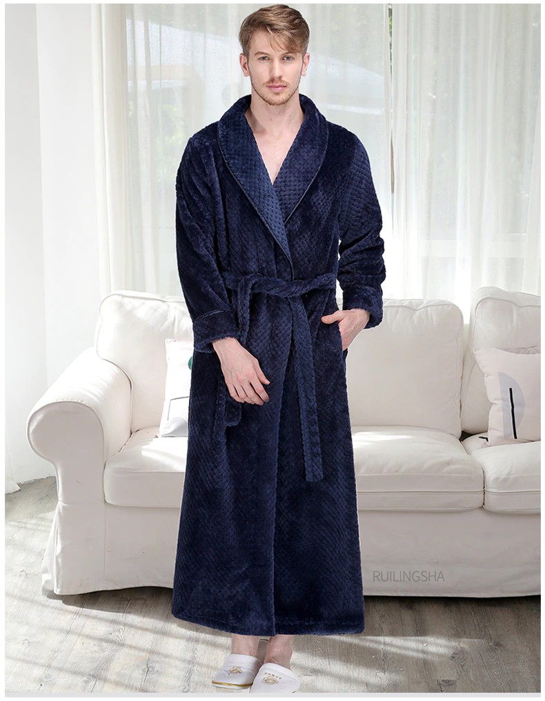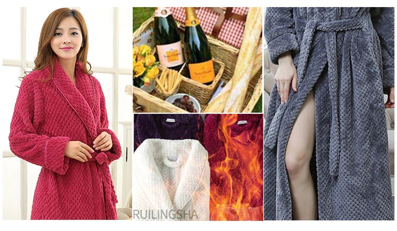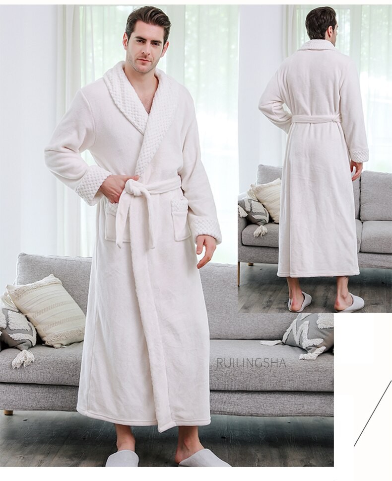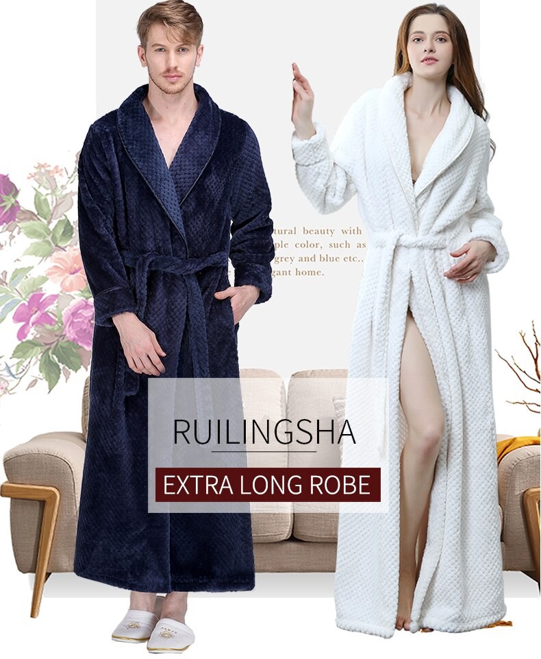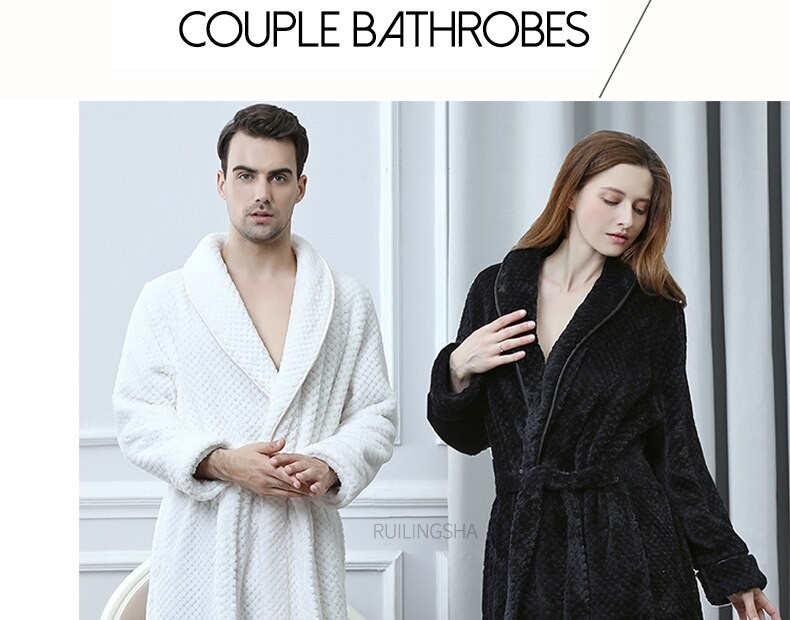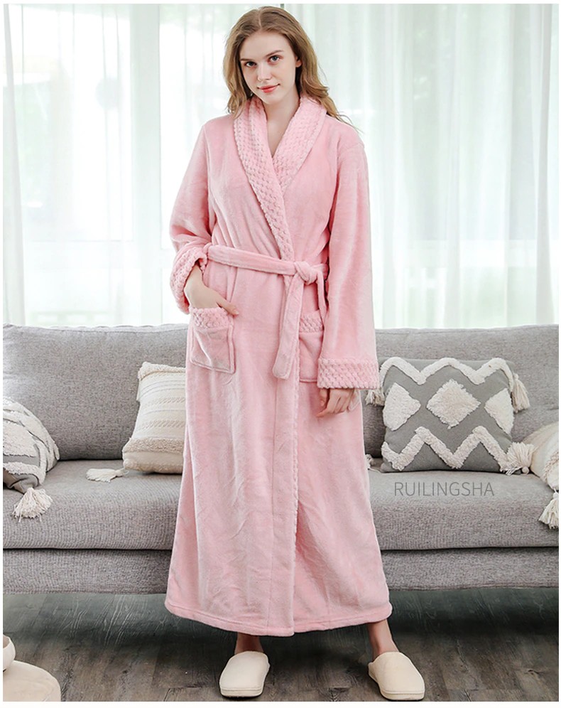 Roupão De Flanela Para Homens E Mulheres, Roupão Longo De Flanela Coral, Robe Feminino Com Robe Quente Para Dormir