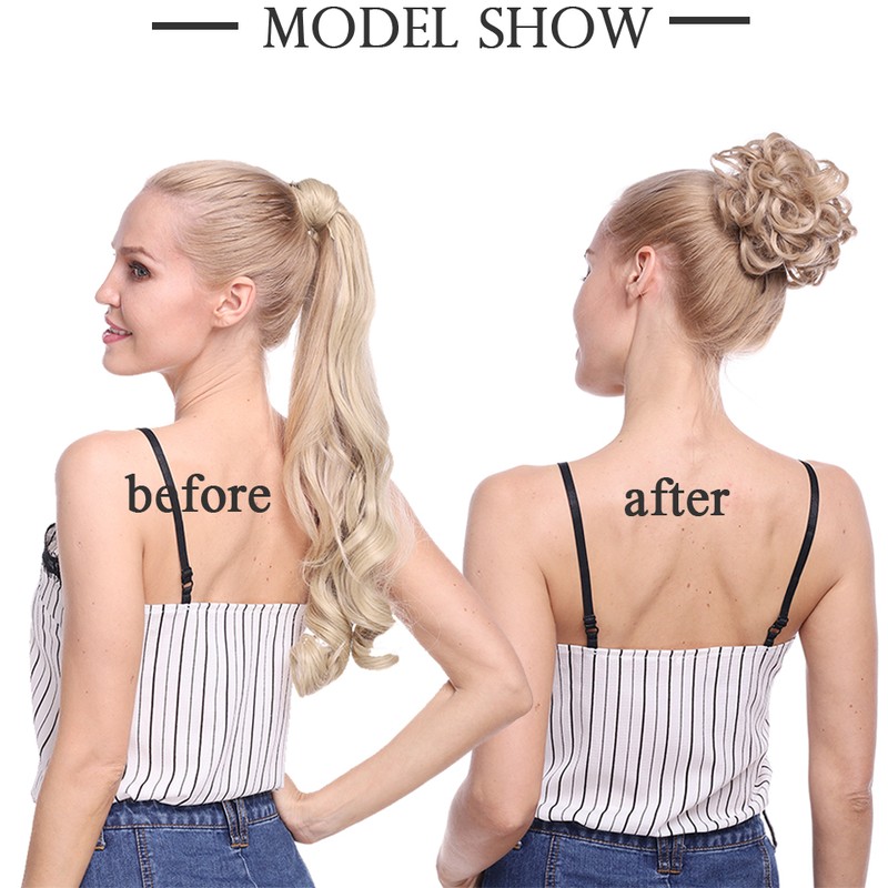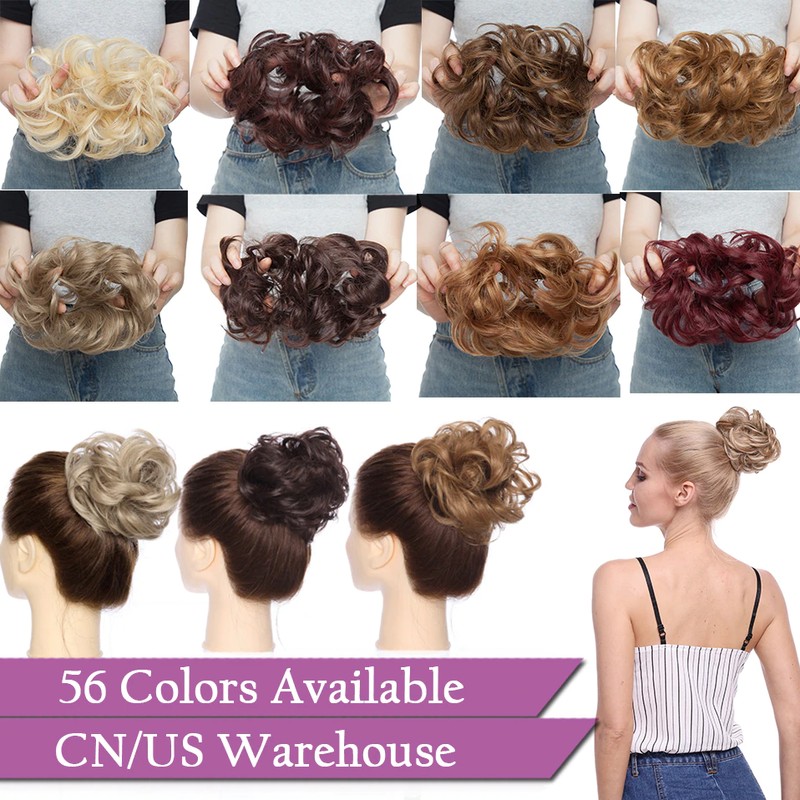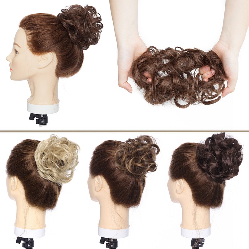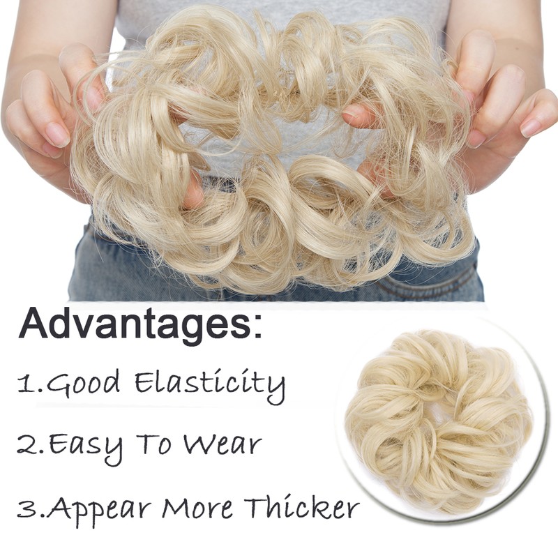 Cabelo sintético elástico de coque ondulado, perfeito para adicionar volume e plenitude a um coque ou rabo de cavalo, muito confortável e fácil de usar, elegante e adorável.