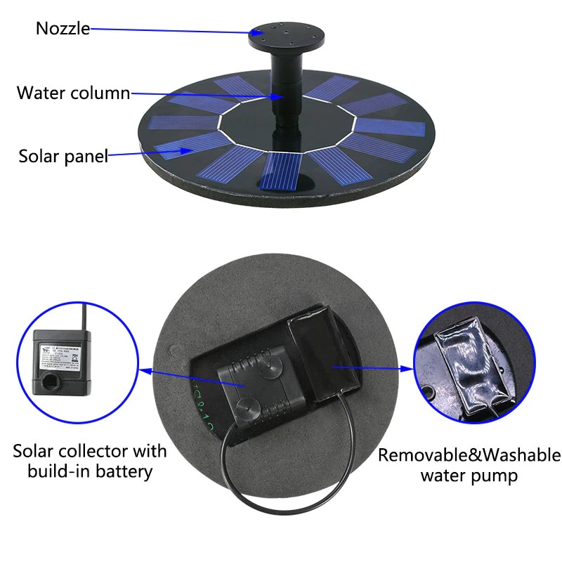 1. make sure put enough water in the fountain, so pump can stay underwater, completely 2. solar panels must be completely exposed to the sun, not the leaves or other items. Panel surface3. please regular cleaning pump, lest jam pump