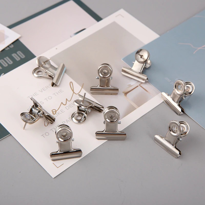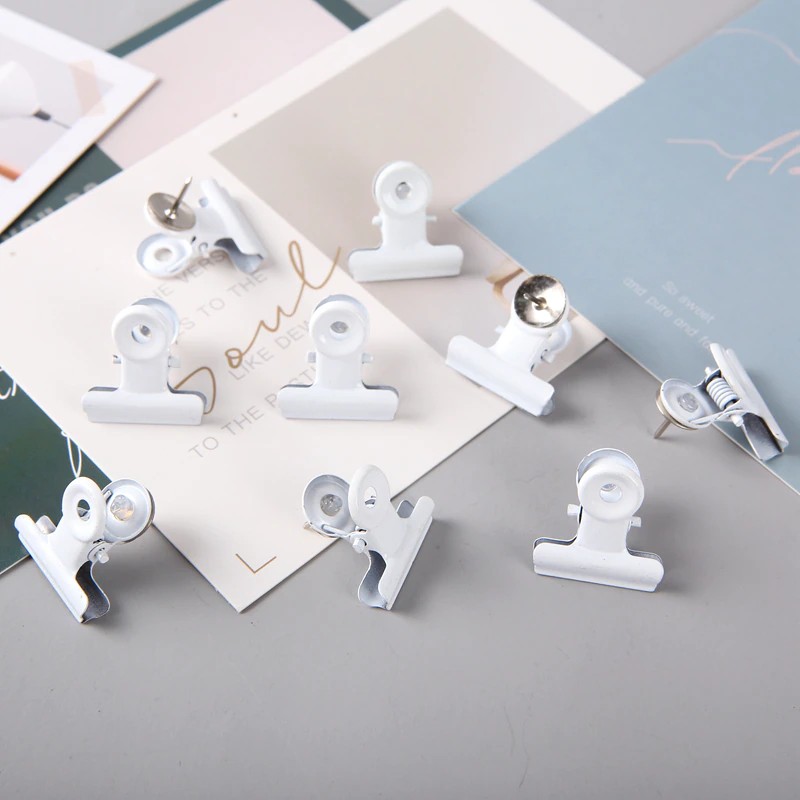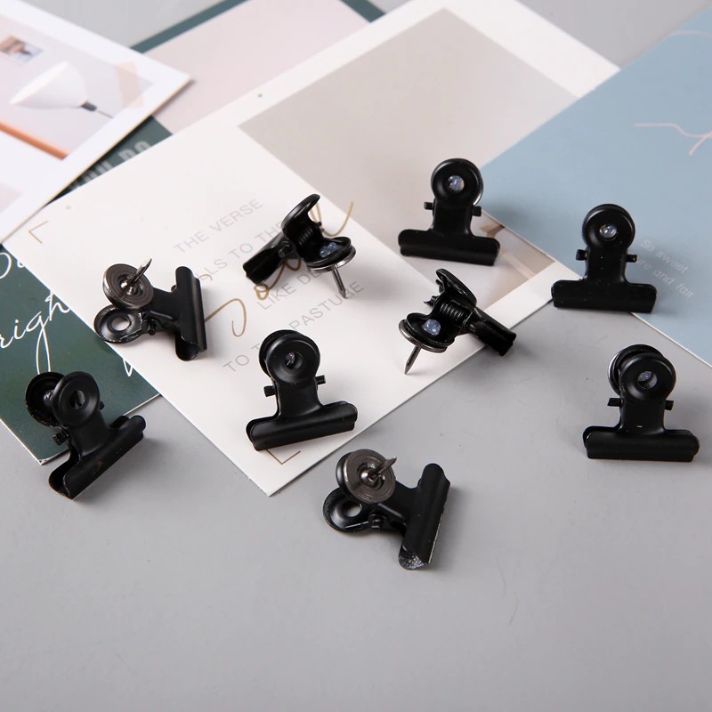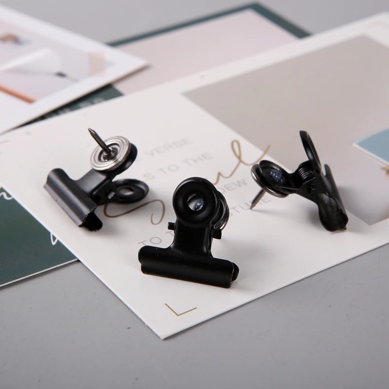 Prenda suas fotos preciosas com segurança com esses clipes de mini bulldog elegantes. Agora você pode fixar suas polaróides, cartões postais especiais e ingressos de show que se aproxima sem deixar orifícios de alfinetes. Prenda suas notas no lugar e exiba em qualquer quadro.