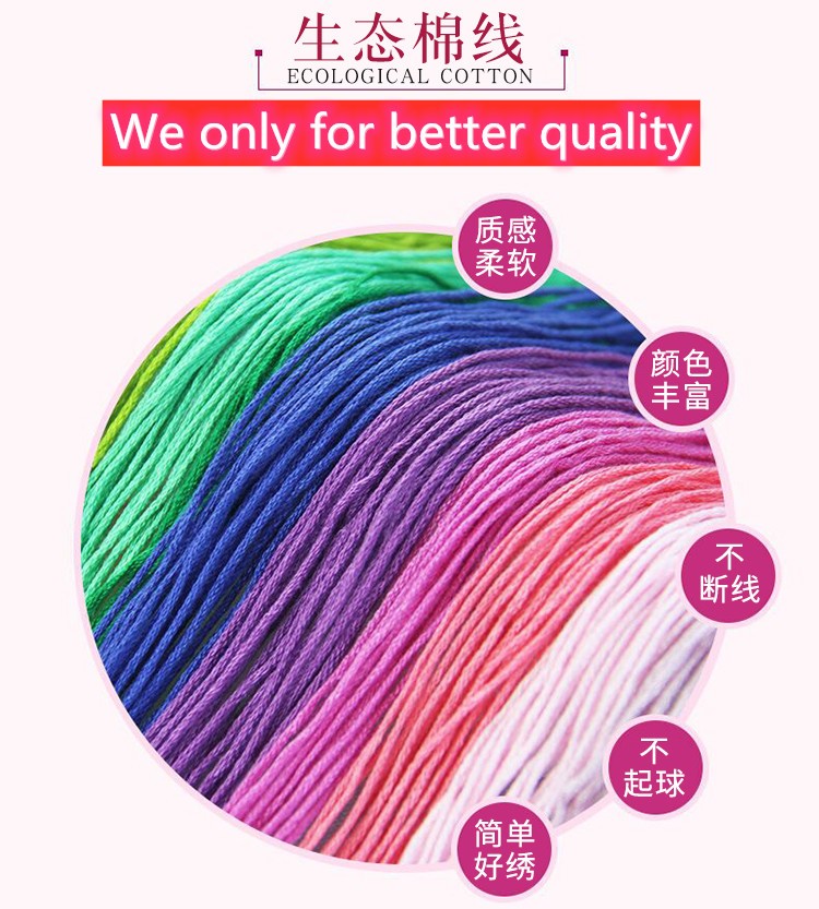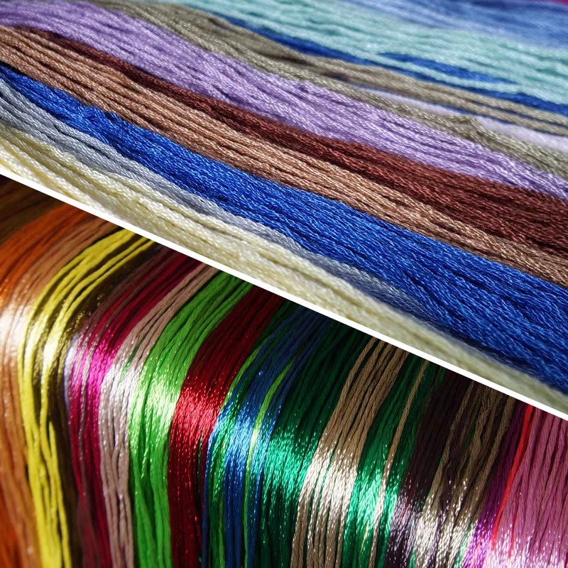 Fio de algodão é a versão normal, fácil para o ponto. Fio de seda é um novo produto, é feito de algodão, não seda real. É mais suave, brilhante e bonito, mas difícil de costurar.