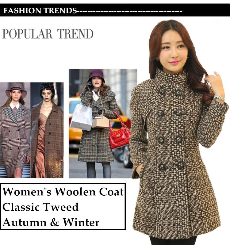 Novas Misturas De Lã Feminino Casaco Inverno O mais novo Outono Moda Elegante Mãe Gola Alta Xadrez Fino Longo Tweed Outerwear Feminino