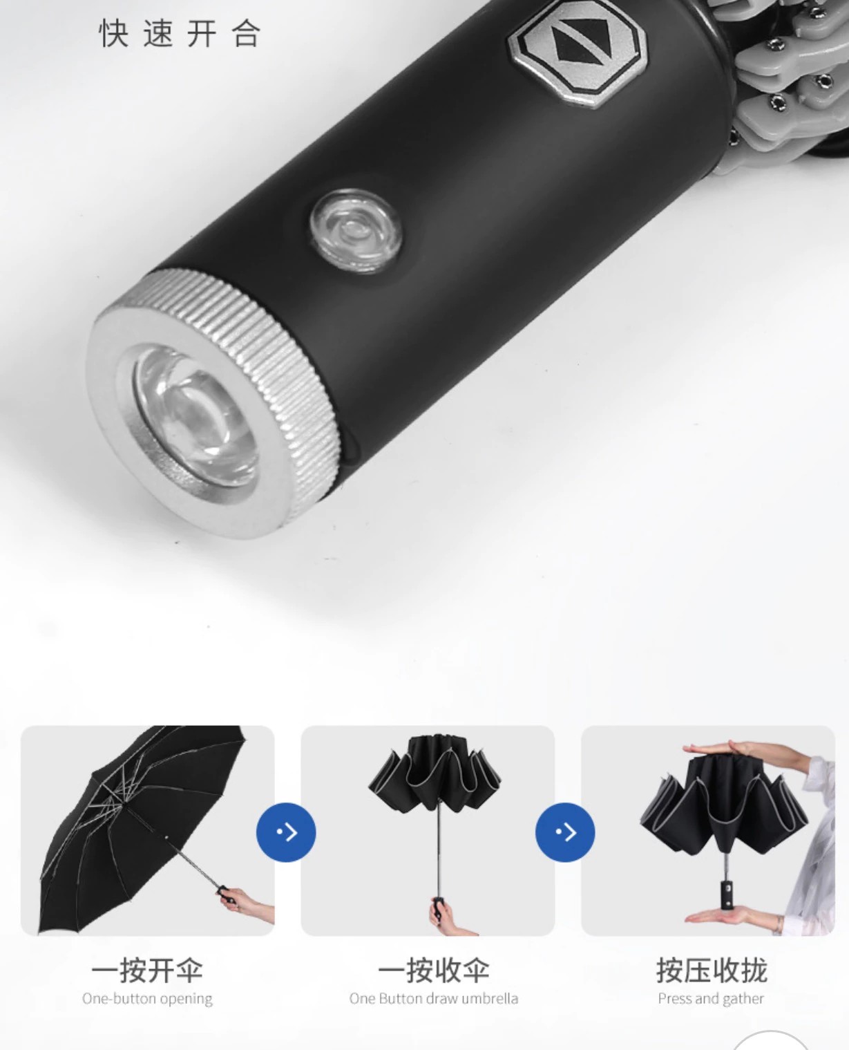 3. pressione o botão para retrair o guarda-chuva automaticamente