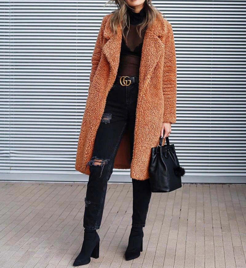 Casaco De Pele Falsa Feminino, Casaco Longo Para Mulheres, Quente De Pelúcia Outono E Inverno, O mais novo