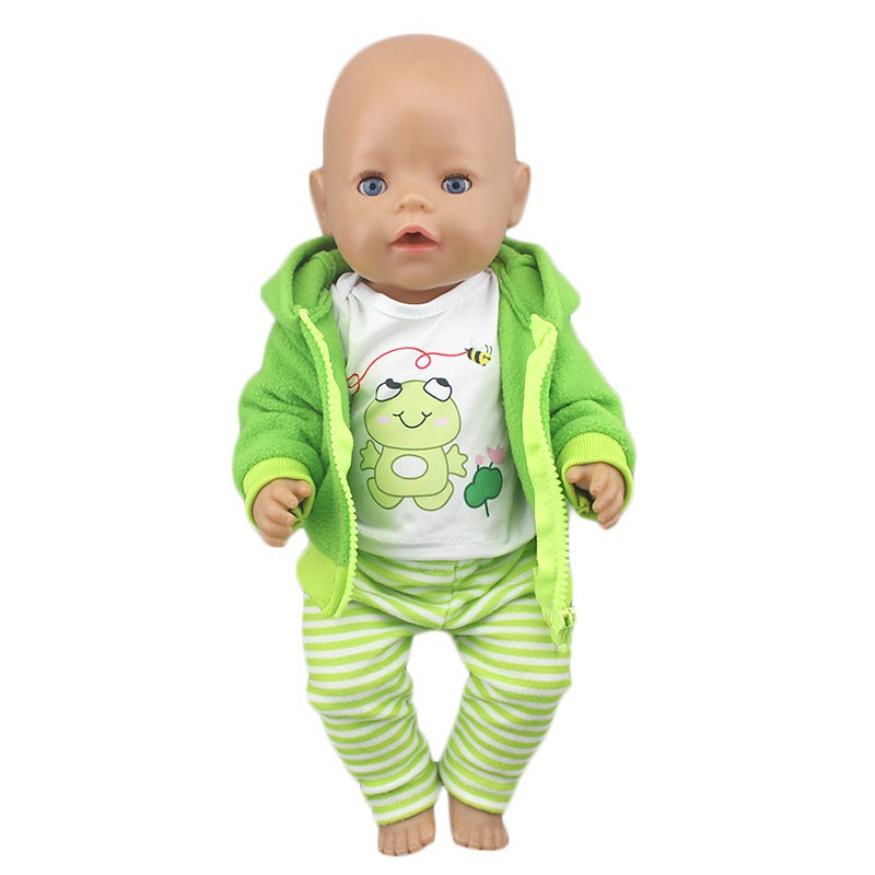 O mais novo Nova Bonito Sapo Ternos Apto Para 43Cm Bebê Boneca 17 Polegada Reborn Roupas De Boneca Do Bebê