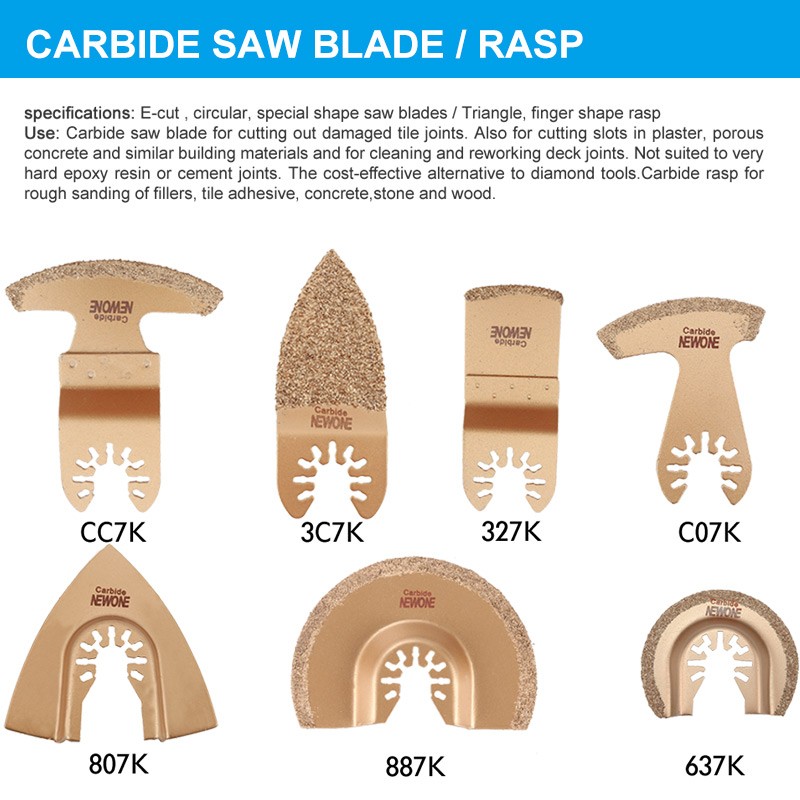 Carboneto De Newone Carboneto Rasp Triângulo Oscilação Viu Lâminas De Carboneto E-Cut Para Lixamento Áspero Enchimentos, Telha Cerâmica Multitool Lâmina De Serra