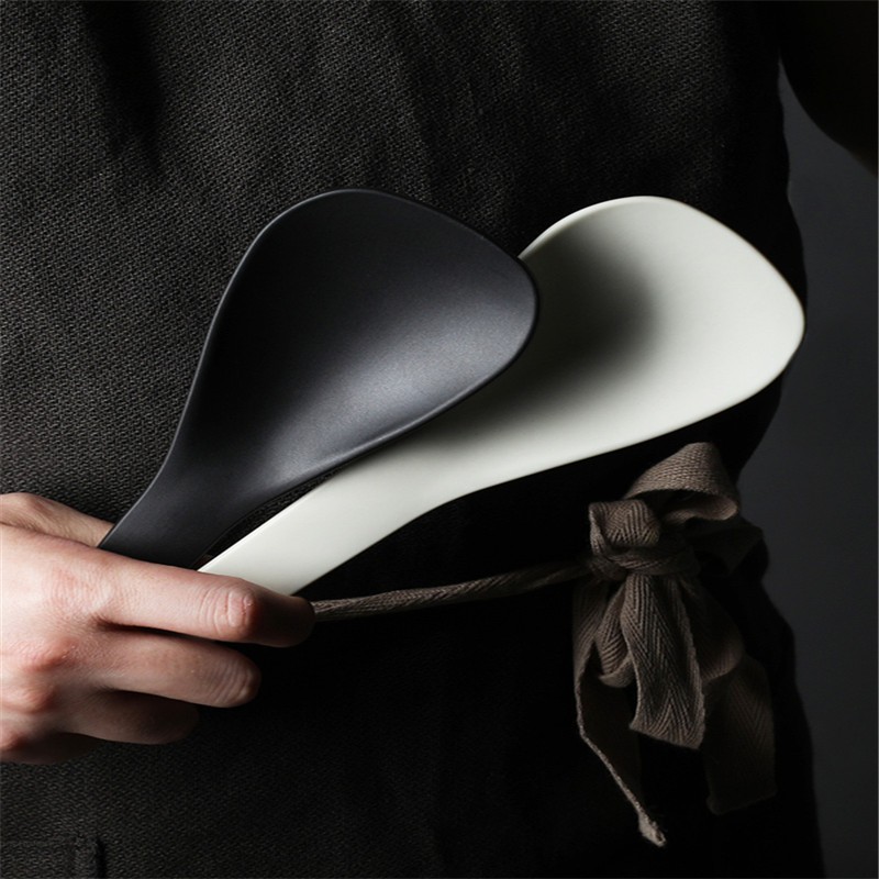 Colher De Plástico Antiaderente Para Arroz, Panela Longa, Espátula Para Cozinha Colher De Sopa Preta E Branca Utensílio Cozinha, Ferramentas De Mesa