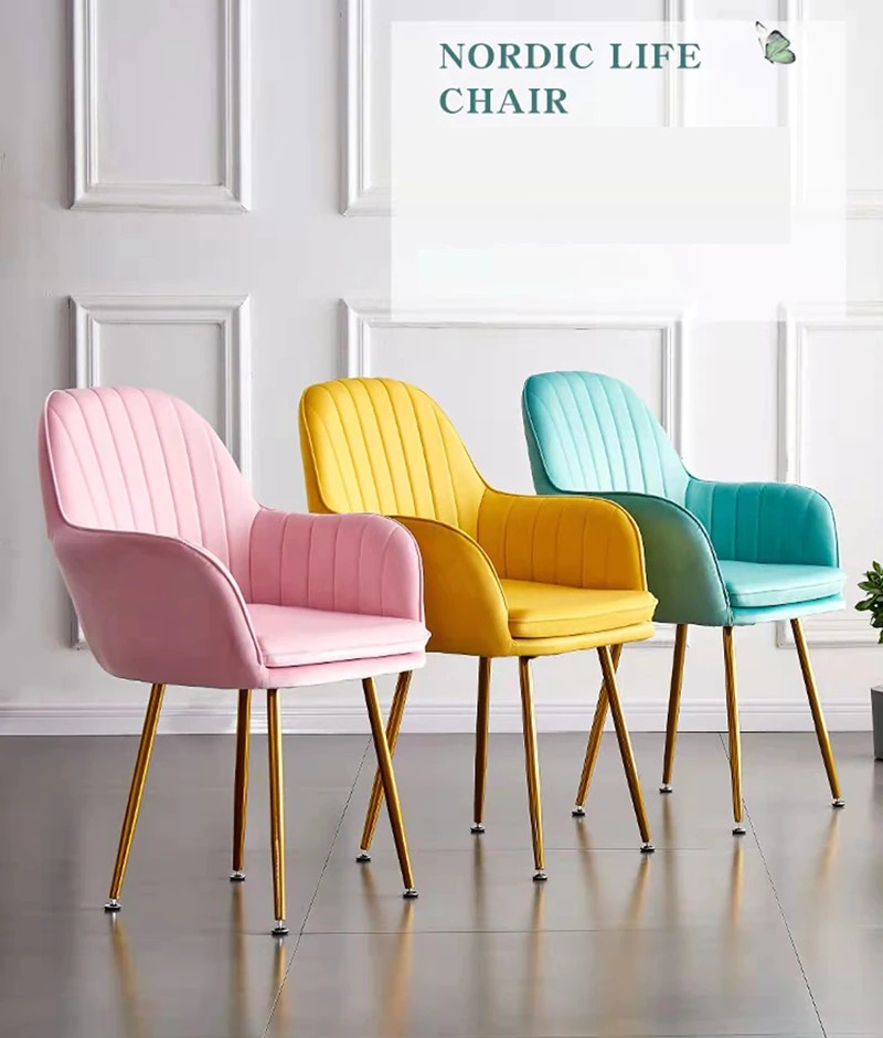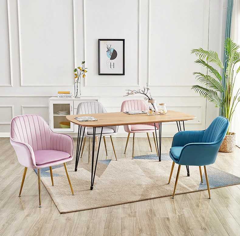 Nordic Jantar Cadeira Ergonômico Luxo Poltrona Veludo Relaxante Cadeira De Espera Encosto Rosa Maquiagem Fezes Macio Restaurante Móveis