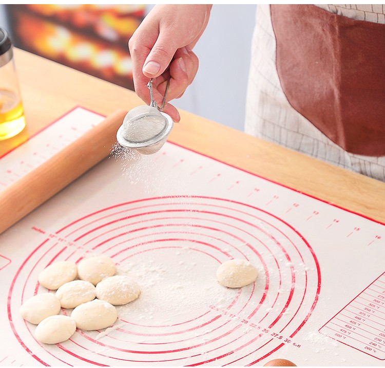 Nossos tapetes são ótimos para trabalhar com materiais pegajosos. é muito fácil rolar a massa, torta, crosta de pizza, marca, biscoitos caseiros e massa de biscoito.