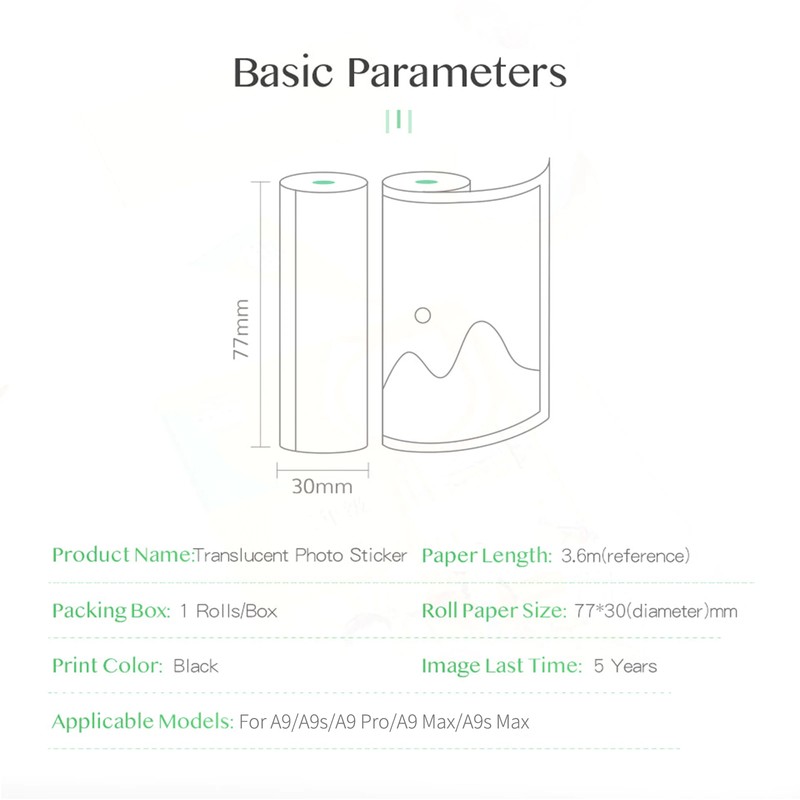 Peripage Adesivo Fotográfico Translúcido, Rolo De Papel Térmico À Prova D'Água Sem Bpa Para Peripage A6/A8/A9/A9S/A9 Pro