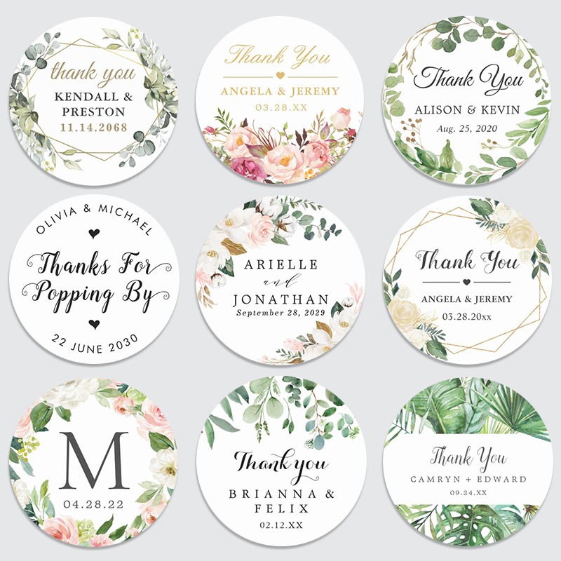 Adesivos Etiqueta Redonda Personalizada Com Nome Personalizado, À Prova D'Água ~ 3 Polegadas, Data Obrigado Para Chá De Noiva, Lembranças Para Festa