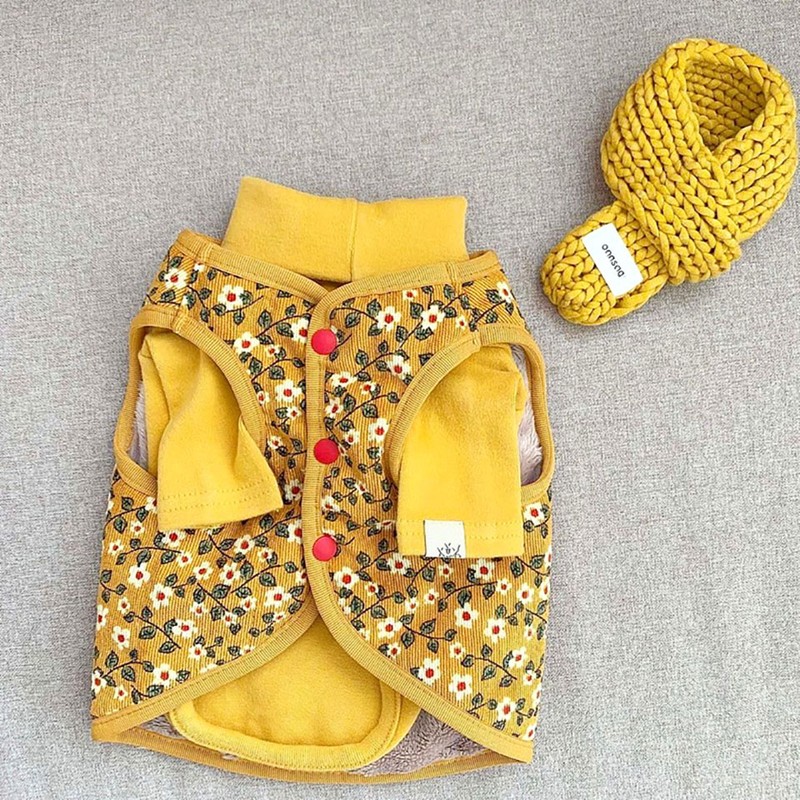 Animal De Estimação Floral Algodão Casaco Outono E Inverno Roupas Casaco De Pelúcia Bichon Roupas Quentes Filhote Cachorro Curto Duas Pernas Roupas Para Animais De Estimação Produtos