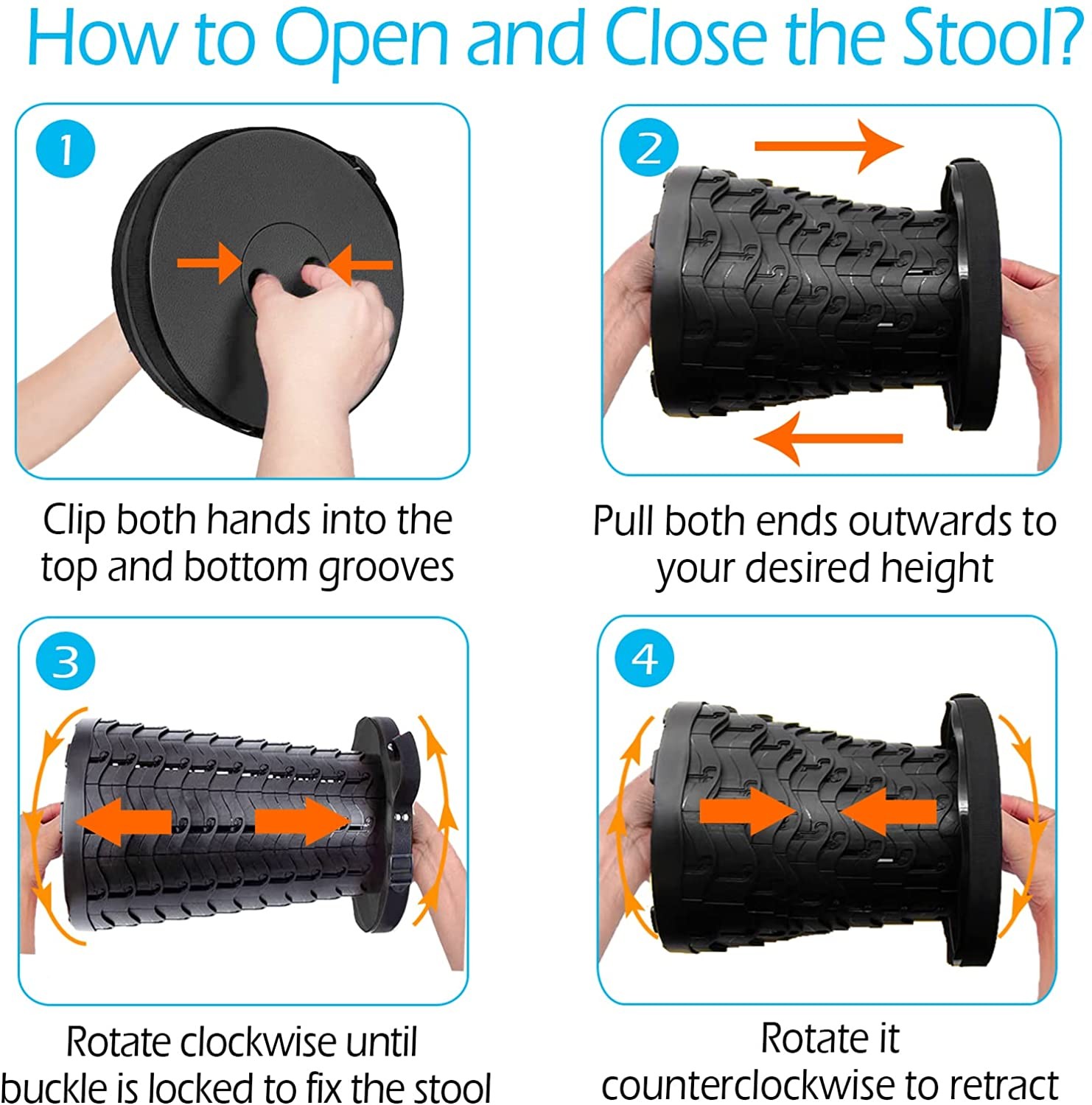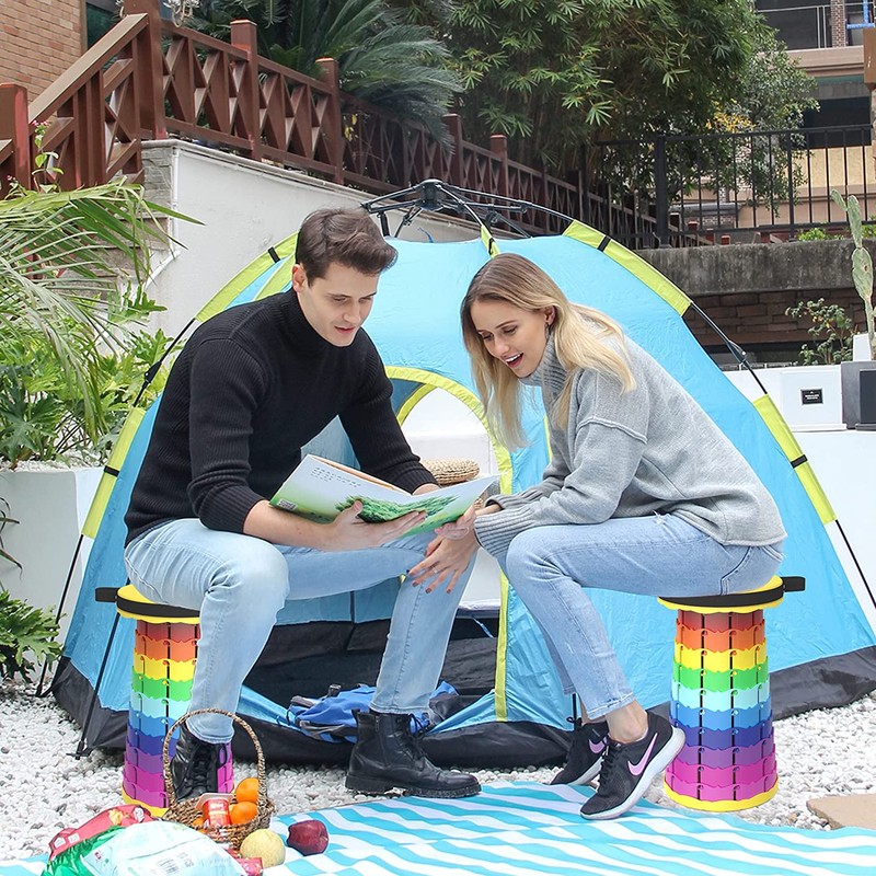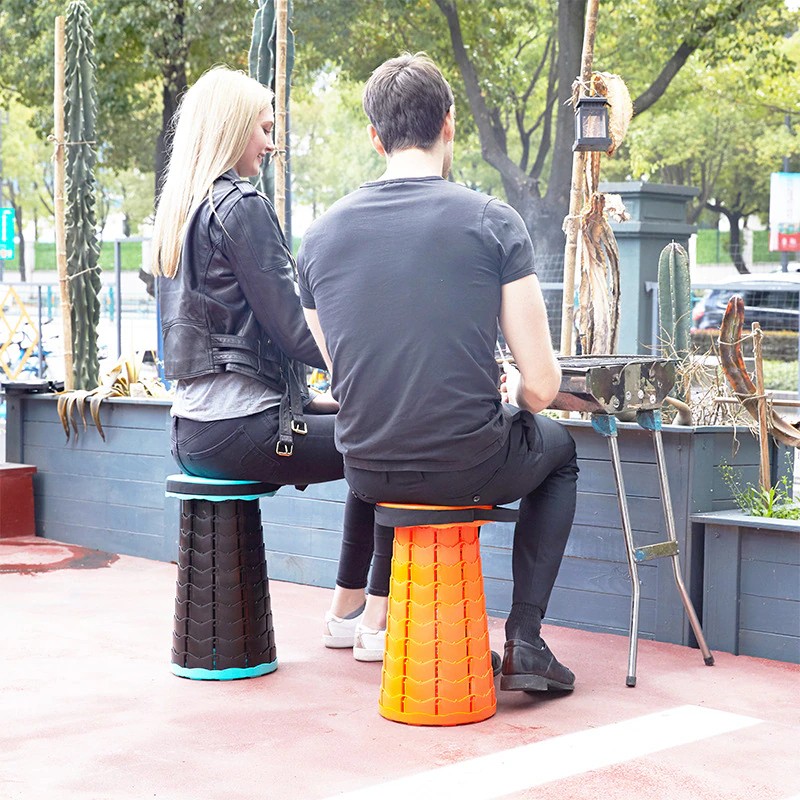 Tamborete telescópico dobrável portátil, cadeira de enfileiramento do metrô e tamborete de pesca de acampamento ao ar livre