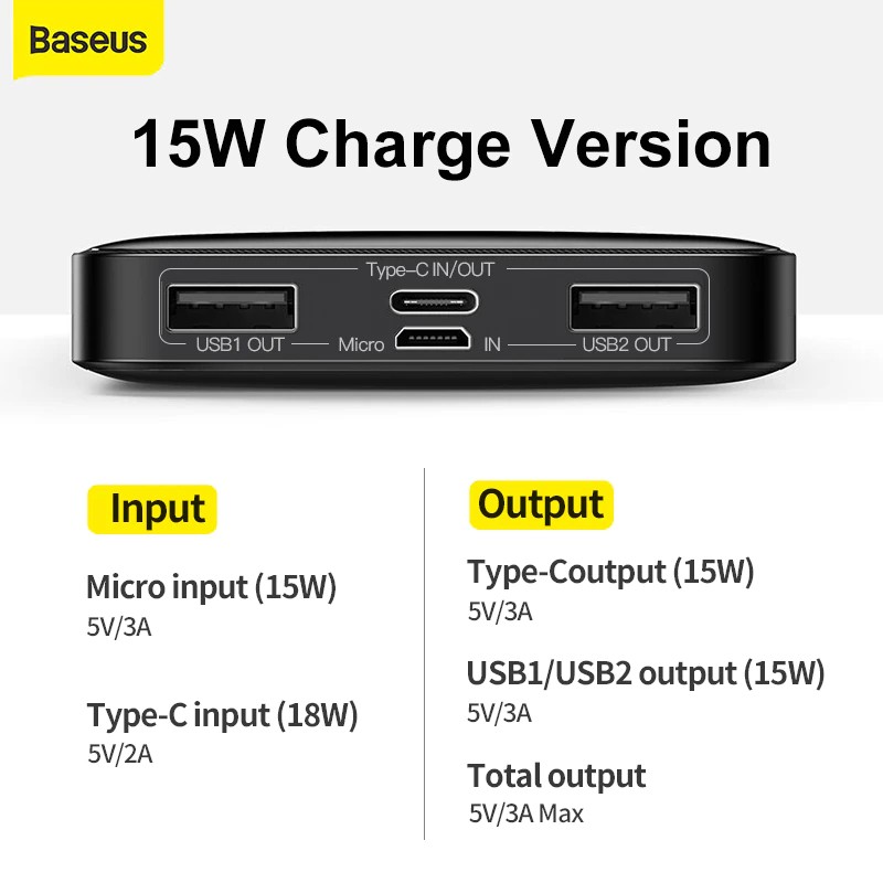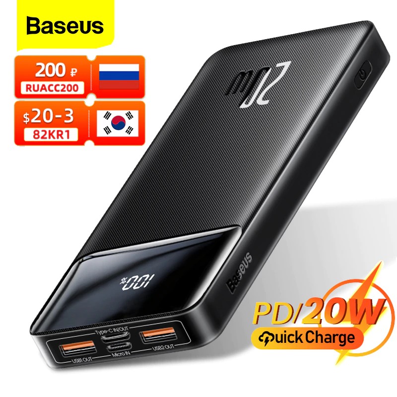 Baseus Power Bank 20000Mah Carregador Portátil Powerbank 10000 Bateria Externa Pd 20W Carregamento Rápido Para Iphone 13 Xiaomi Poverbank