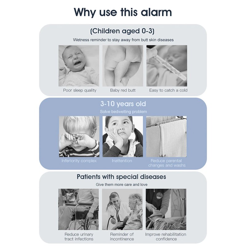 Mais amor e mais cuidado para os wetters:Este alarme de urtiga é útil para manter os bebês longe de doenças da pele da bunda, resolvendo o problema de urtiga de crianças pequenas, e dando mais cuidado aos idosos com doenças especiais.