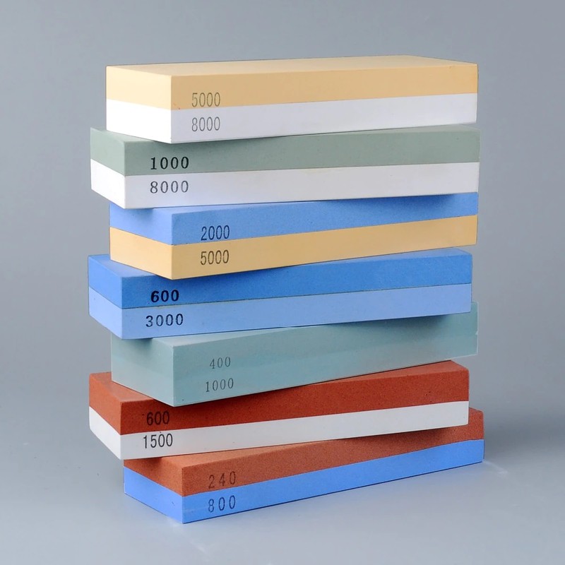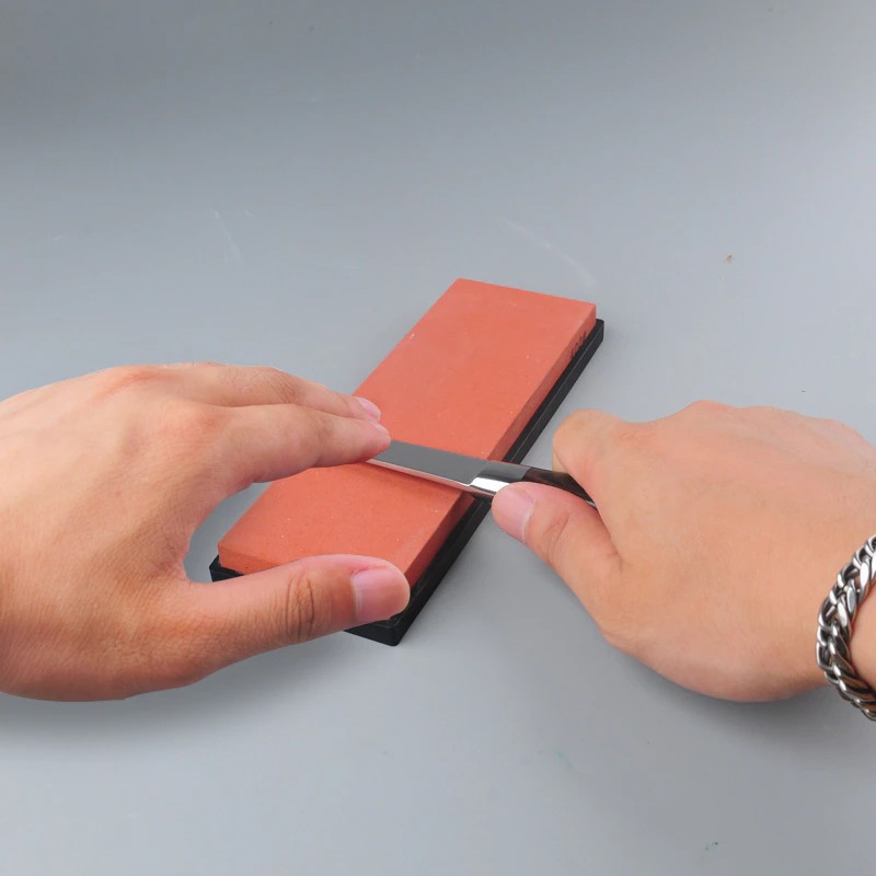 Passo 1: moagem áspera, usada para reparar bordas severamente danificadas e envelhecimento, adequada para facas sem brilho. Segure a faca em um ângulo de 10-30 graus, e moer suavemente a borda para trás e para a frente na superfície da pedra até que a borda esteja afiada o suficiente. Depois que as facas são afiadas, moagem áspera e afiação são necessários em meio ano. Também depende da situação específica.