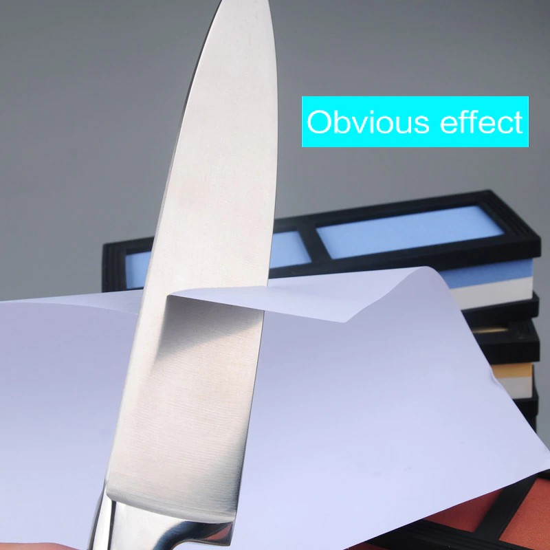 Passo 2: moagem fina, as etapas necessárias para eliminar rebarbas de borda. Usando a pressão mais leve, repita o passo 1 para aparar as bordas até que estejam lisas e afiadas. De um modo geral, use-o uma vez por semana para manter a lâmina
