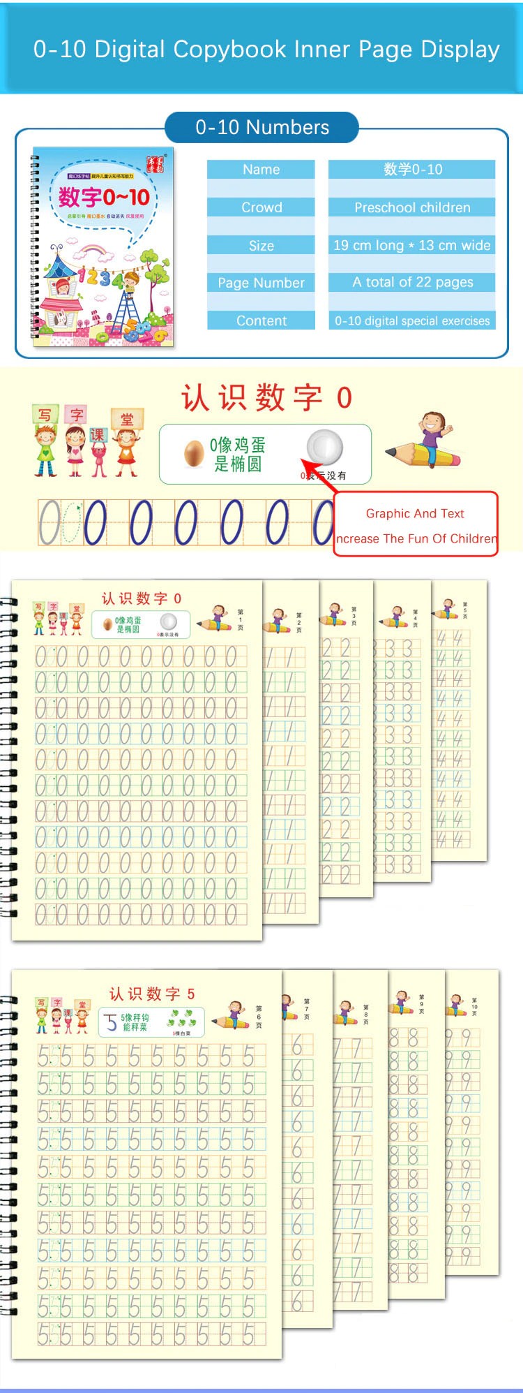 Livro De Cópia Reutilizável Para Crianças, 3D, Livro Para Caligrafia Números 0-10 Livros De Escrita A Mão Aprendizagem Matemática, Livro De Prática Para Crianças Brinquedos