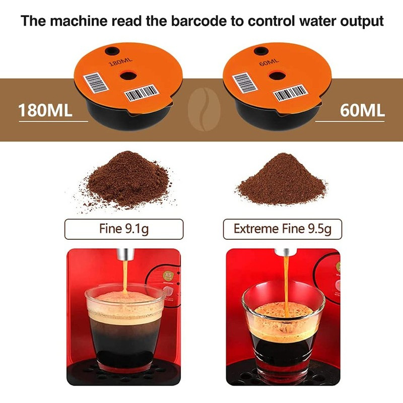 WORKS: Our solution is designed to fit Bosch Tassimo brewers and will brew 60 or 180ml using the provided barcodes on the top sealing lid. The reusable disc is easily cleaned in running water.