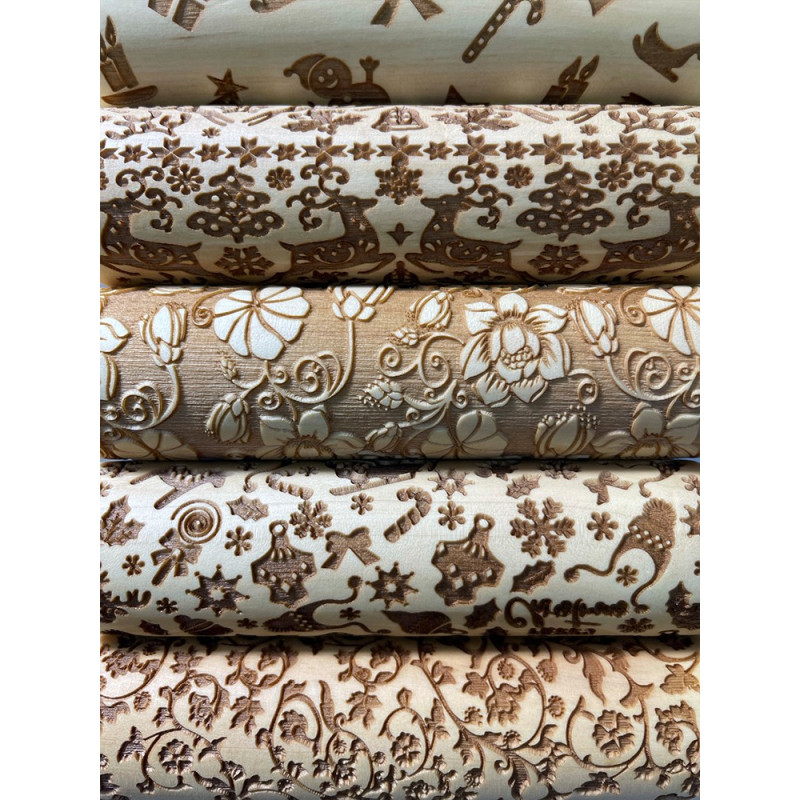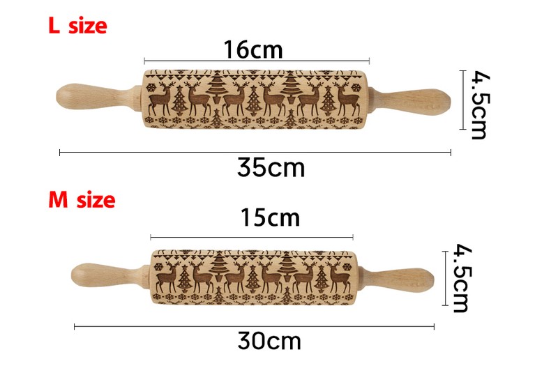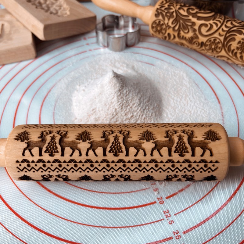 Christmas Rolling Pins Rock Snowflake Elk Wooden Rolling Embossing Baking Cookies Biscuit Fondant Cake Patterned Roller 35*5Cm