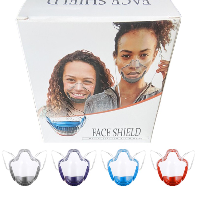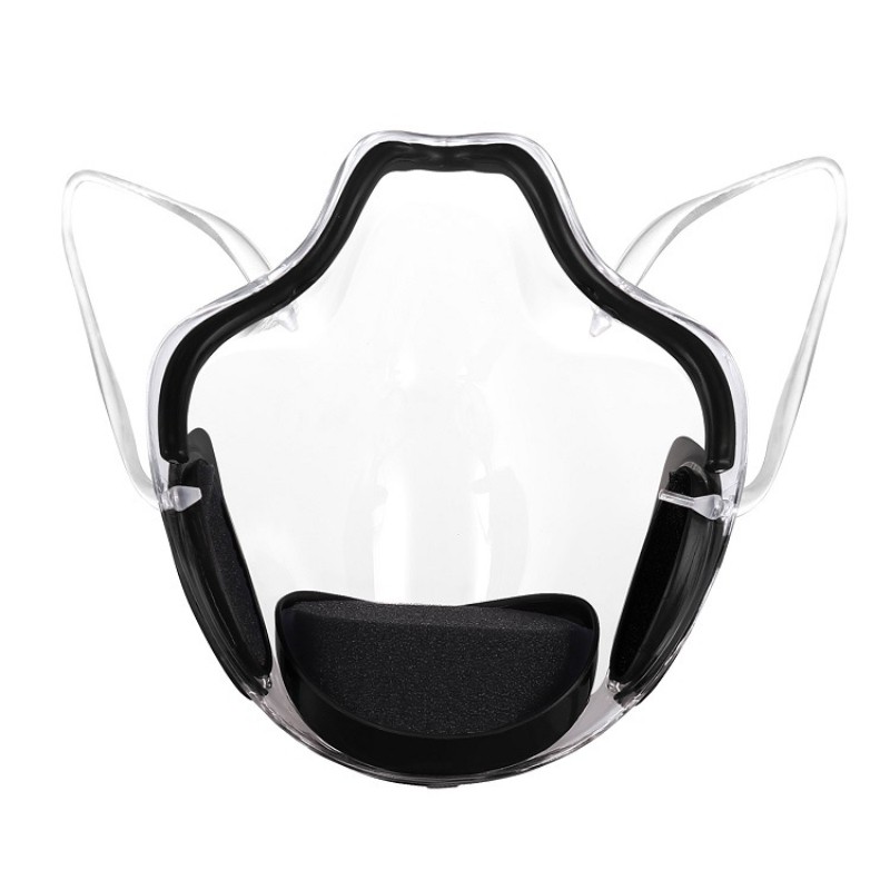 4. máscara transparente de cobertura completa: transparente, leve, confortável e respirável, que é uma escolha ideal para proteger a boca e o nariz de espirrar detritos, gotículas e respingo.