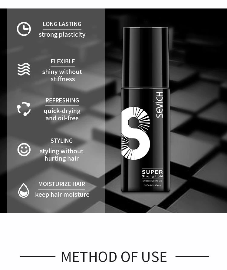 Efeito: forte exploração, ajuste uniforme tipo um cabelo, rápido seco e não pegajoso