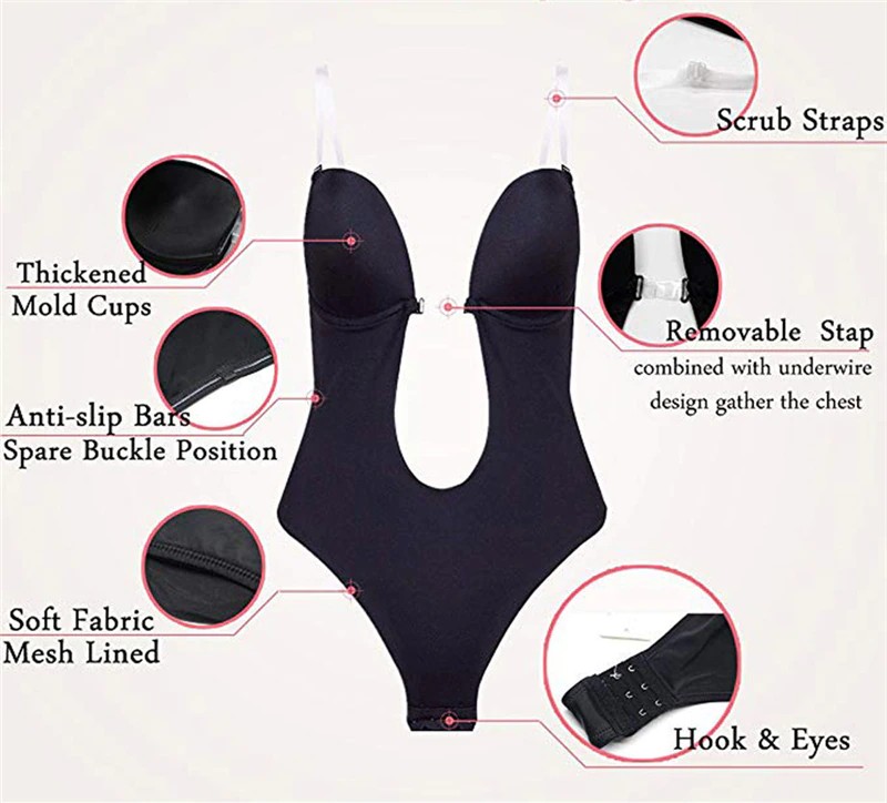 Bodysuit Sexy Corset Sem Costas Shapewear Profundo Decote Em V Corpo Shaper U Mergulho Tanga Cintura Trainer Cinta Clara Acolchoada Empurrar Para Cima Push Рст Т