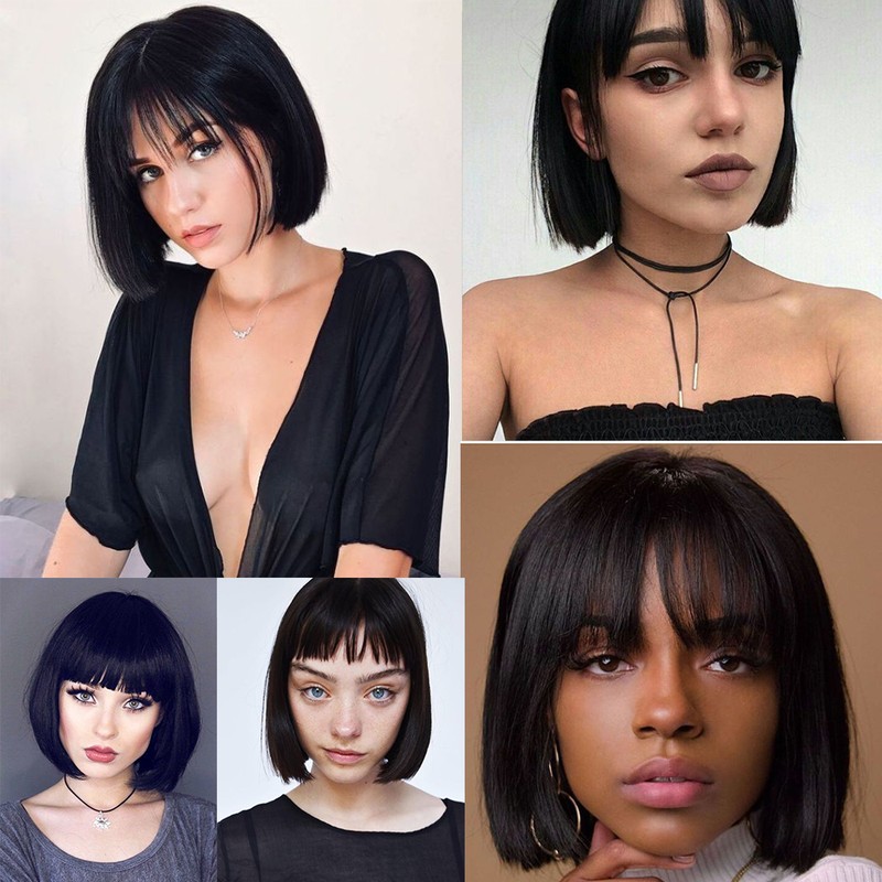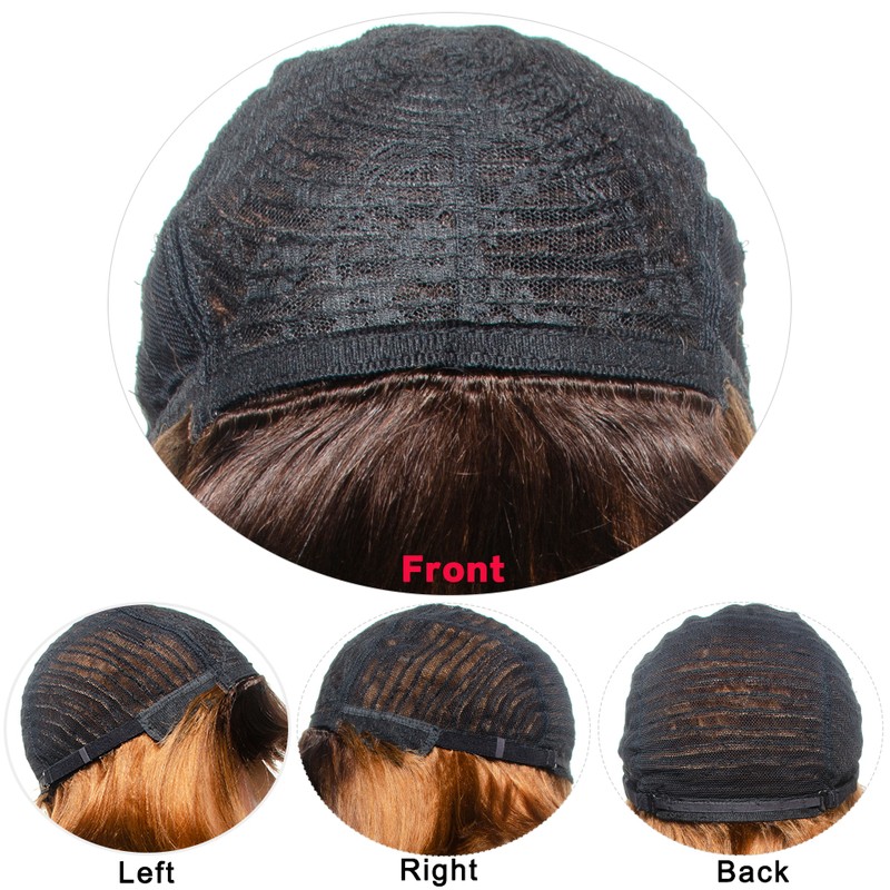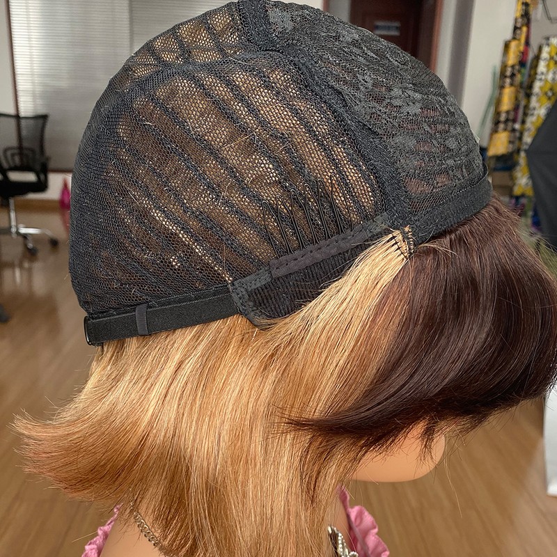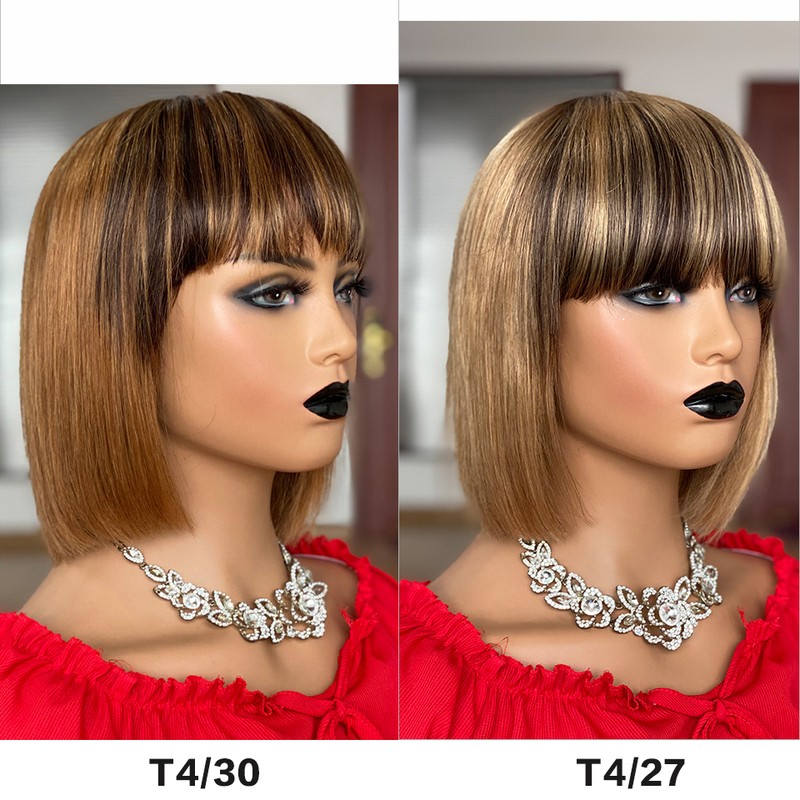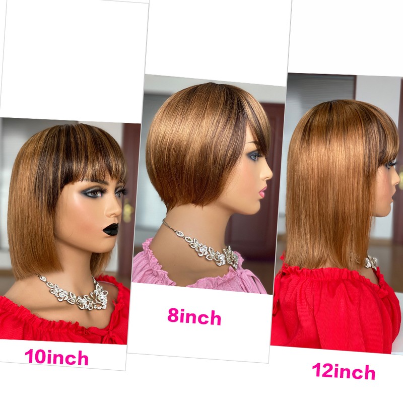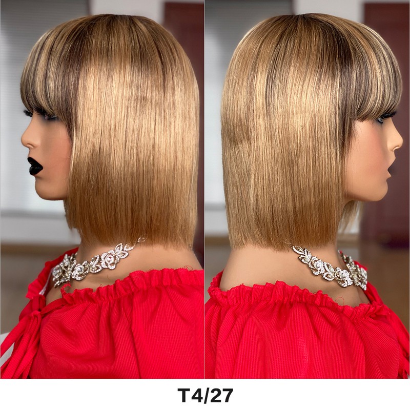 Peruca Bob Curta Com Franja, Cabelo Humano Brasileiro Liso Ombré, Loiro Mel Feito À Máquina