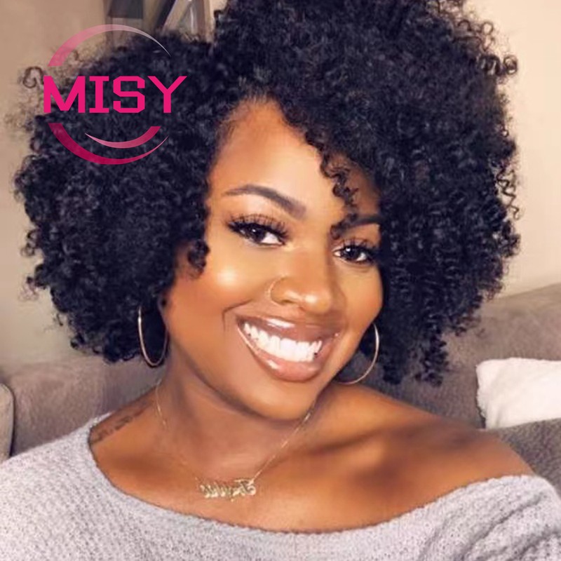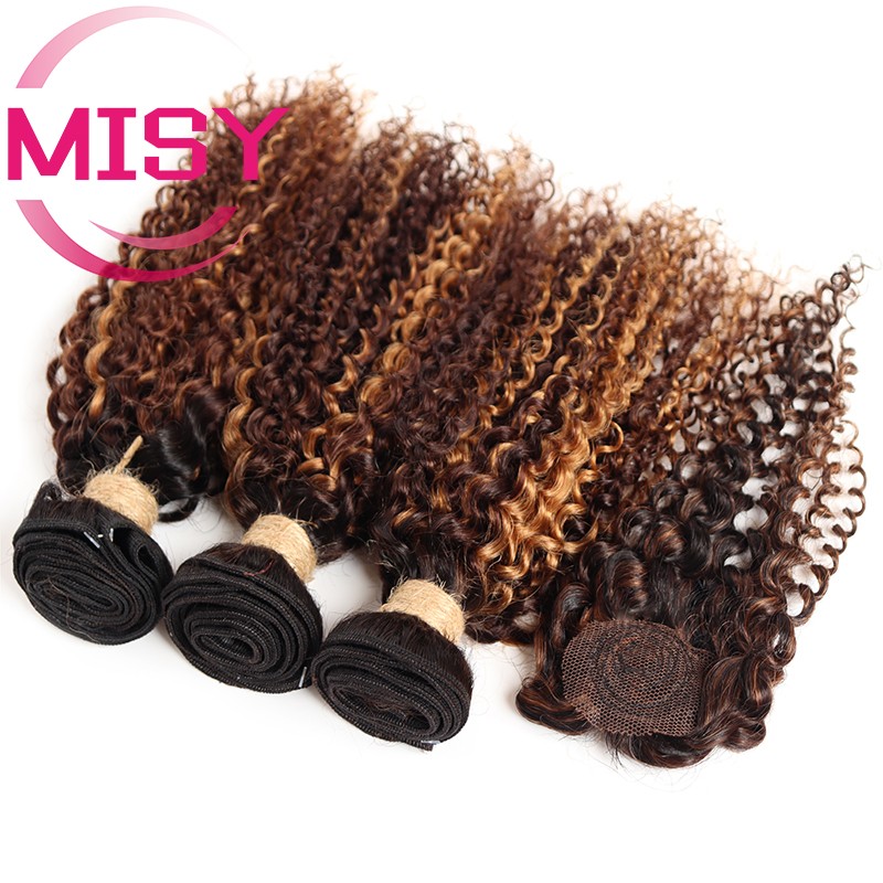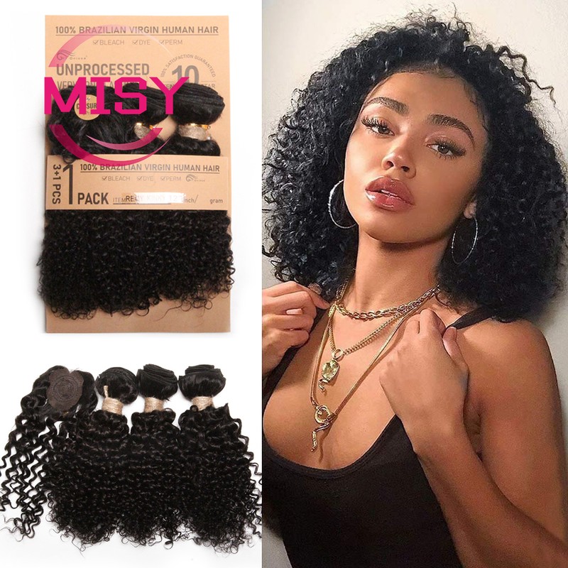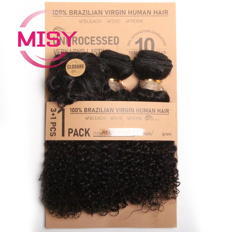 Feixes De Cabelo Encaracolado Brasileiro Curto Com Fecho De Cabelo Humano Natural Kinky Curly Bundles Com Máquina Feita Fechamento Para As Mulheres