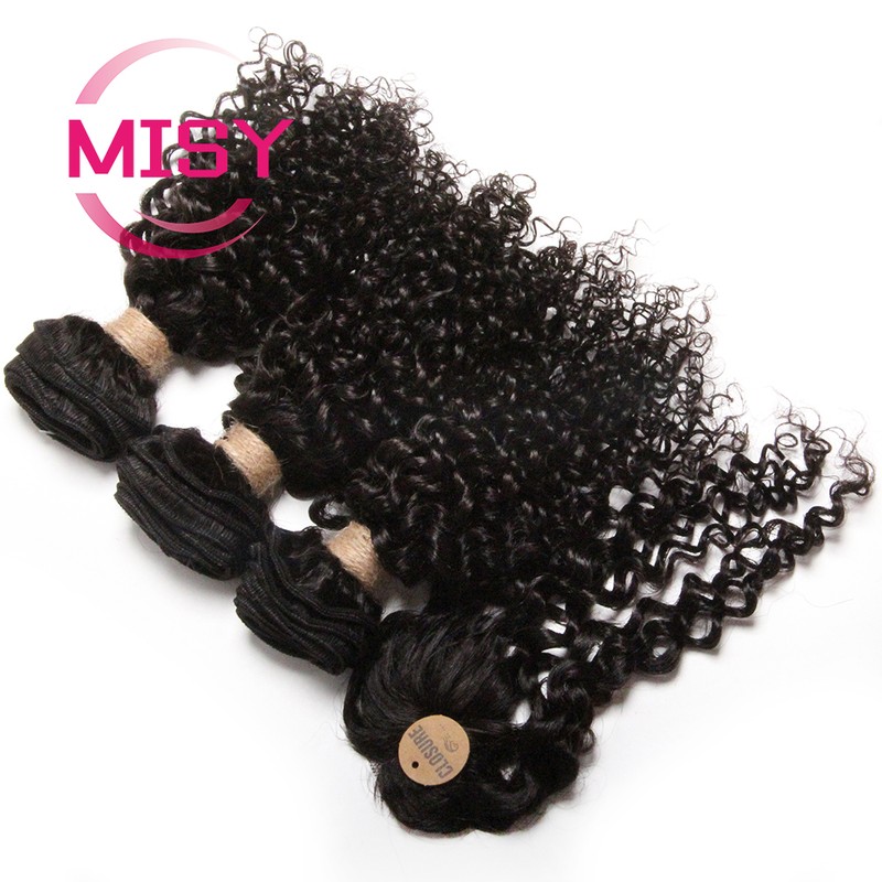 Feixes de cabelo encaracolado brasileiro curto com fecho de cabelo humano natural kinky curly bundles com máquina feita fechamento para as mulheres
