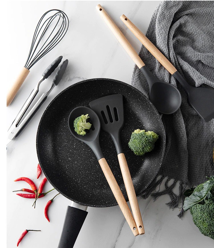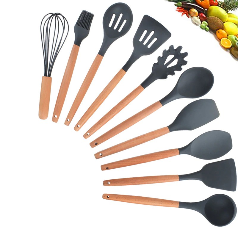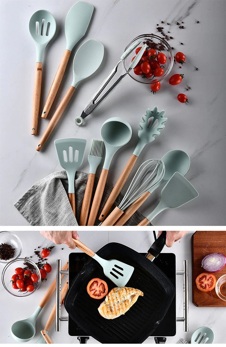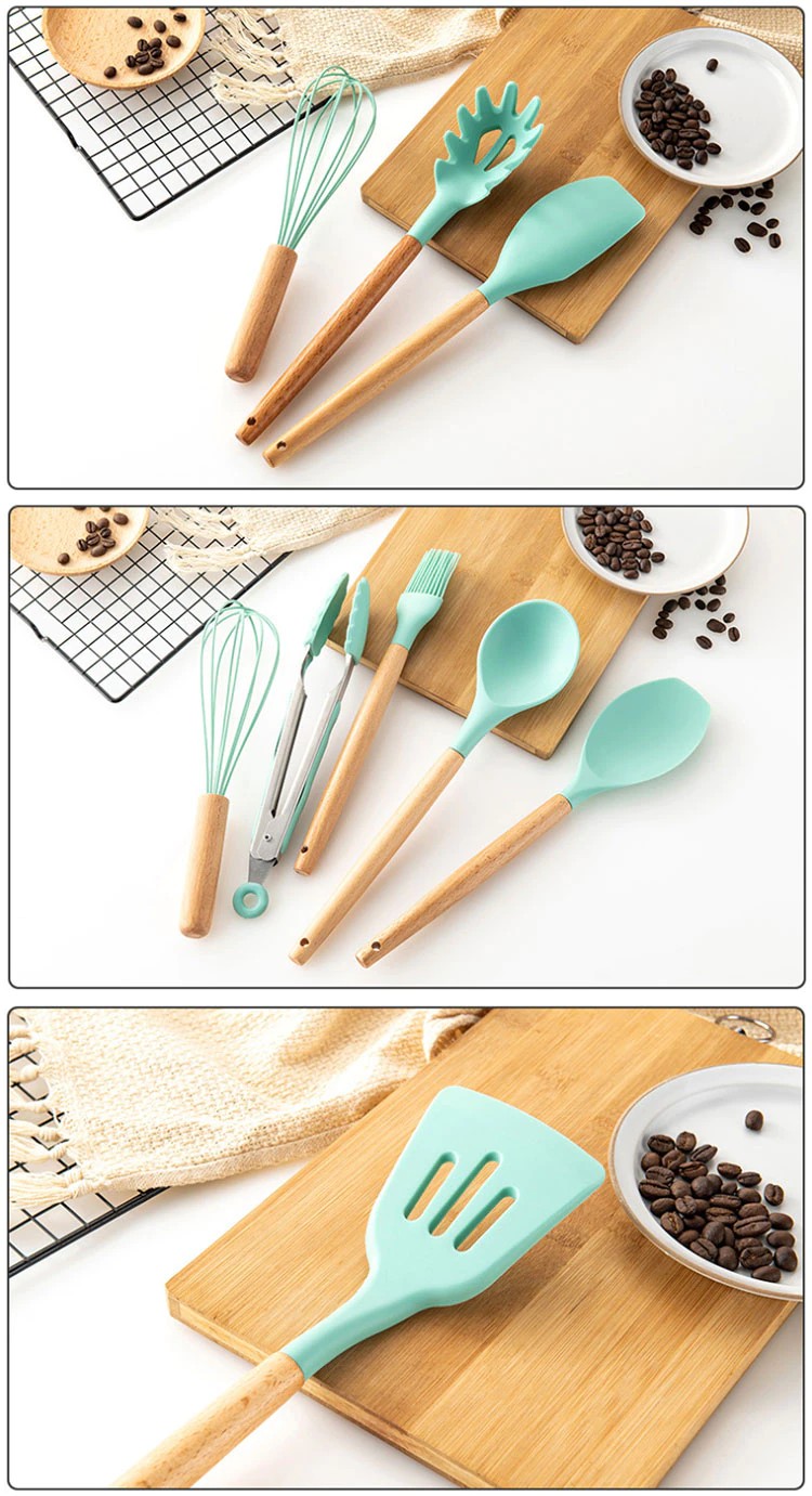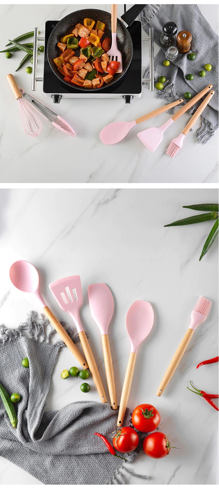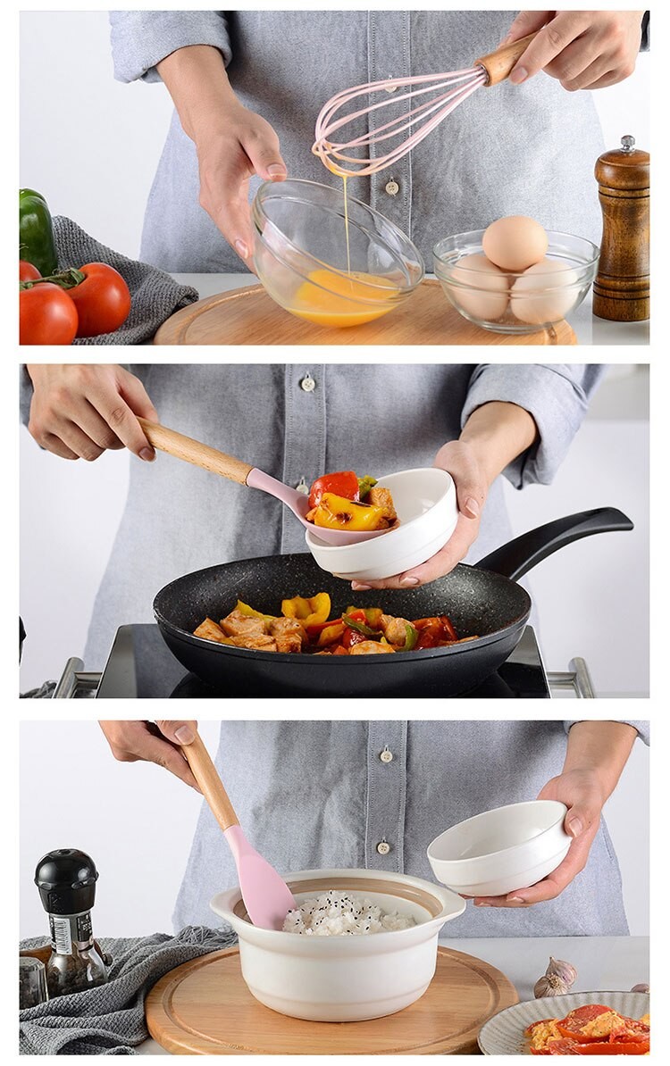 Silicone Cozinha Cozinhar Ferramentas Resistente Ao Calor Colher Espátula Utensílios De Cozinha Antiaderente Concha Ovo Batedor Utensílios De Cozimento Acessórios