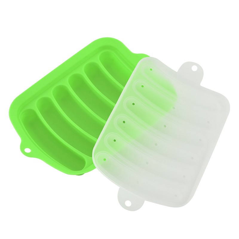 2. por causa da superfície antiaderente do molde, você pode facilmente empurrar a salsicha para fora do molde, mantendo sua forma perfeita. A comida cozida é fácil de demould e limpa.