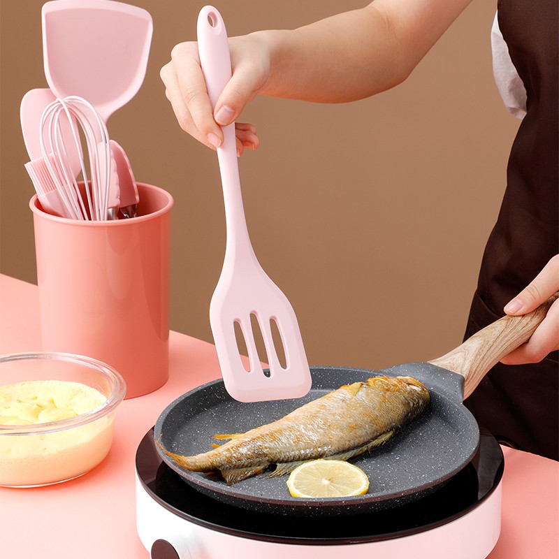 Design moderno: este conjunto atraente inclui todos os seus utensílios de cozinha essenciais-um virador, colher com fenda, concha, colher, espátula de colher, colher, espátula, escova de alinhamento.