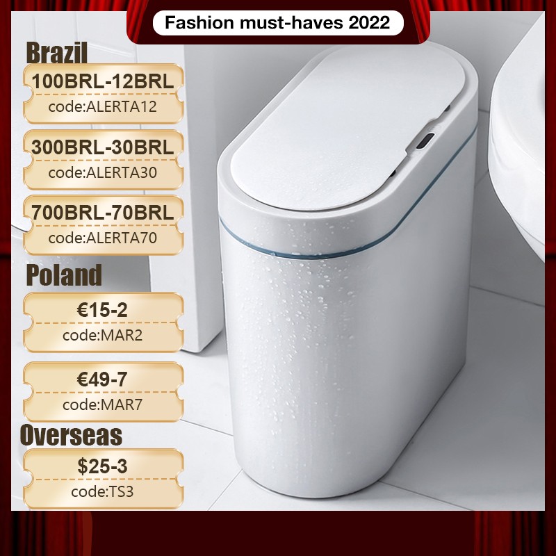 Sensor Inteligente Lata De Lixo Eletrônico Automático Banheiro Banheiro À Prova Dwaterproof Água Costura Estreita Lixeira Banheiro Basurero Inteligente