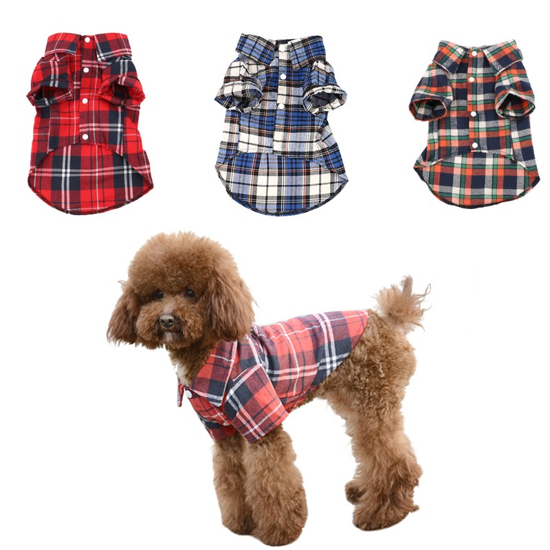 Algodão Macio Manga Curta Camisas Pet Cachorro Gato Roupas Filhote De Cachorro Gatinho Roupas Xadrez Cachorro T Camisa
