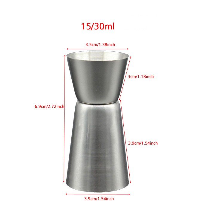 Jigger duplo de 25/50ml: 37mm/1,46 polegadas * 40mm/1,57 polegadas * 81mm/3.19 polegadas