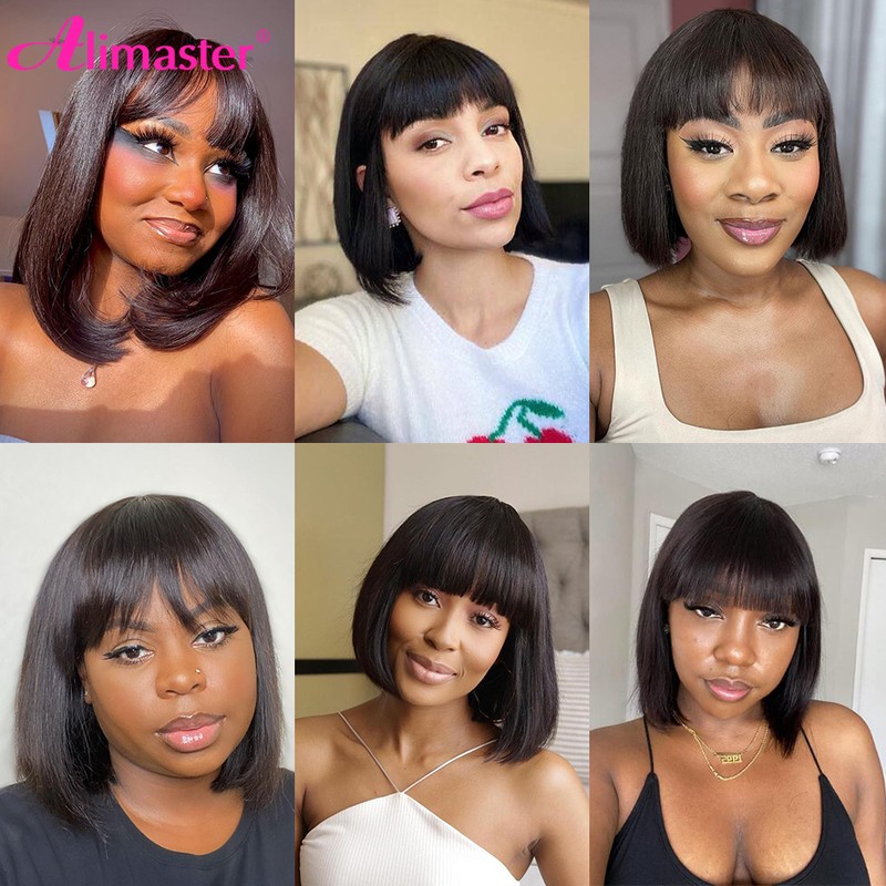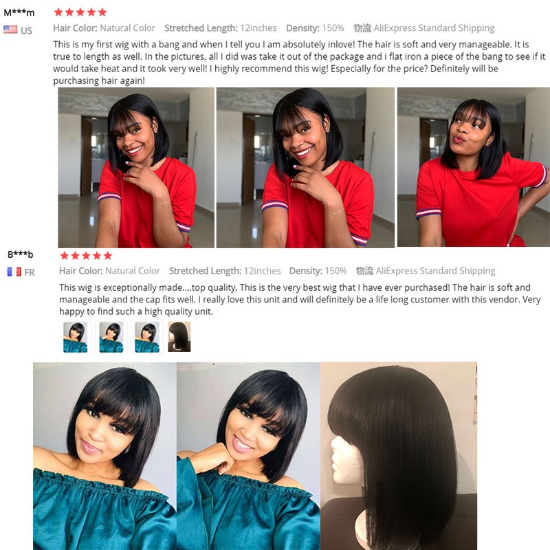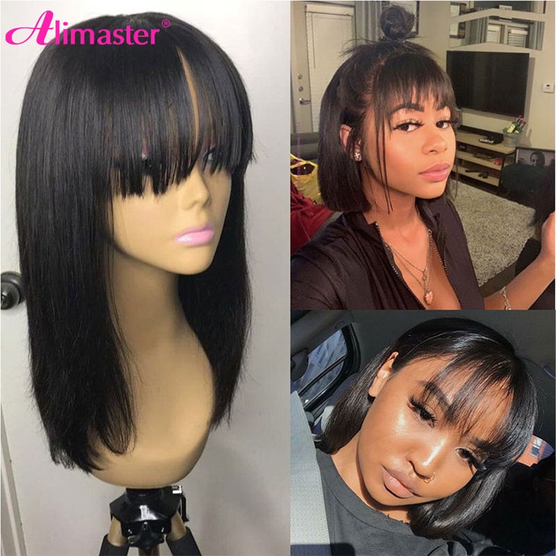 Perucas De Bob Do Cabelo Humano Do Brasileiro Curto Com Franja Perucas De Bob Cabelo Humano Para A Mulher Nenhuma Máquina Completa Do Laço Feita Perucas De Cabelo Humano