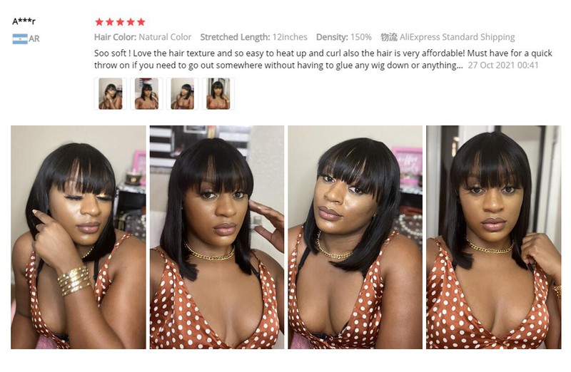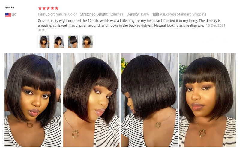 Nome do cabelo: Bob Short Wig com franja