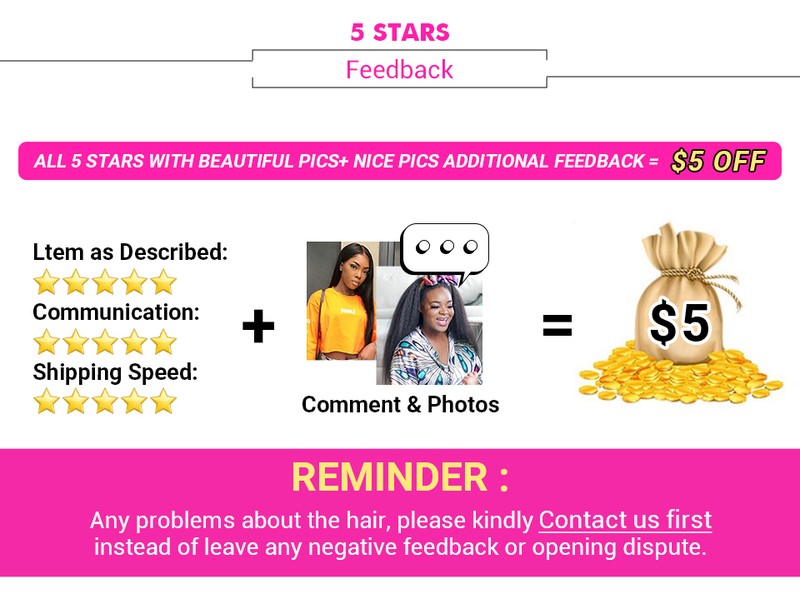 Qualquer problema sobre o cabelo, gentilmente entre em contato conosco primeiro em vez de deixar feedback negativo ou abrir disputa.