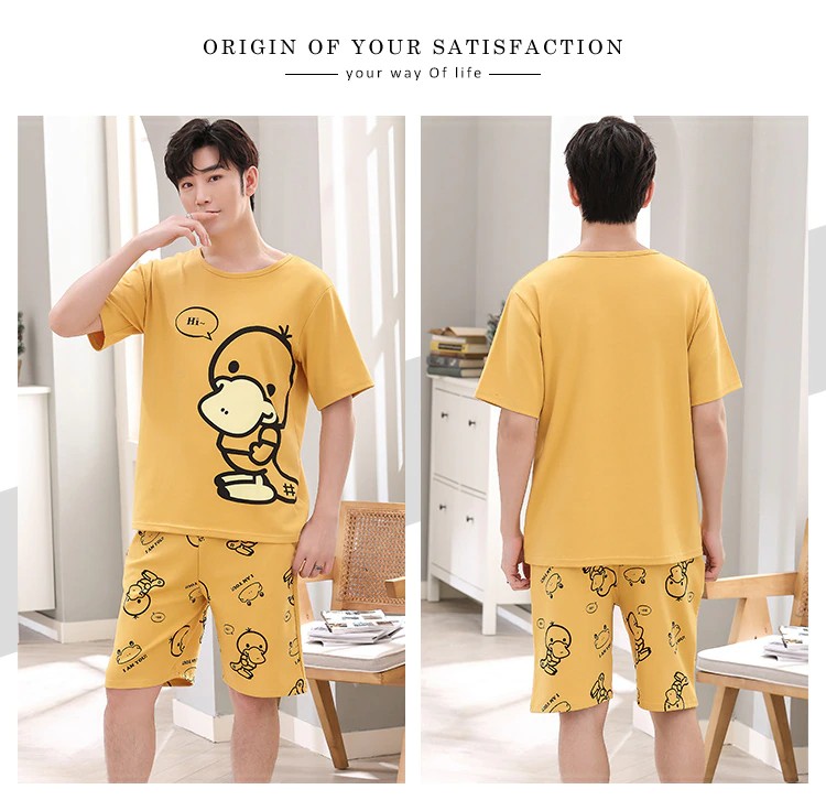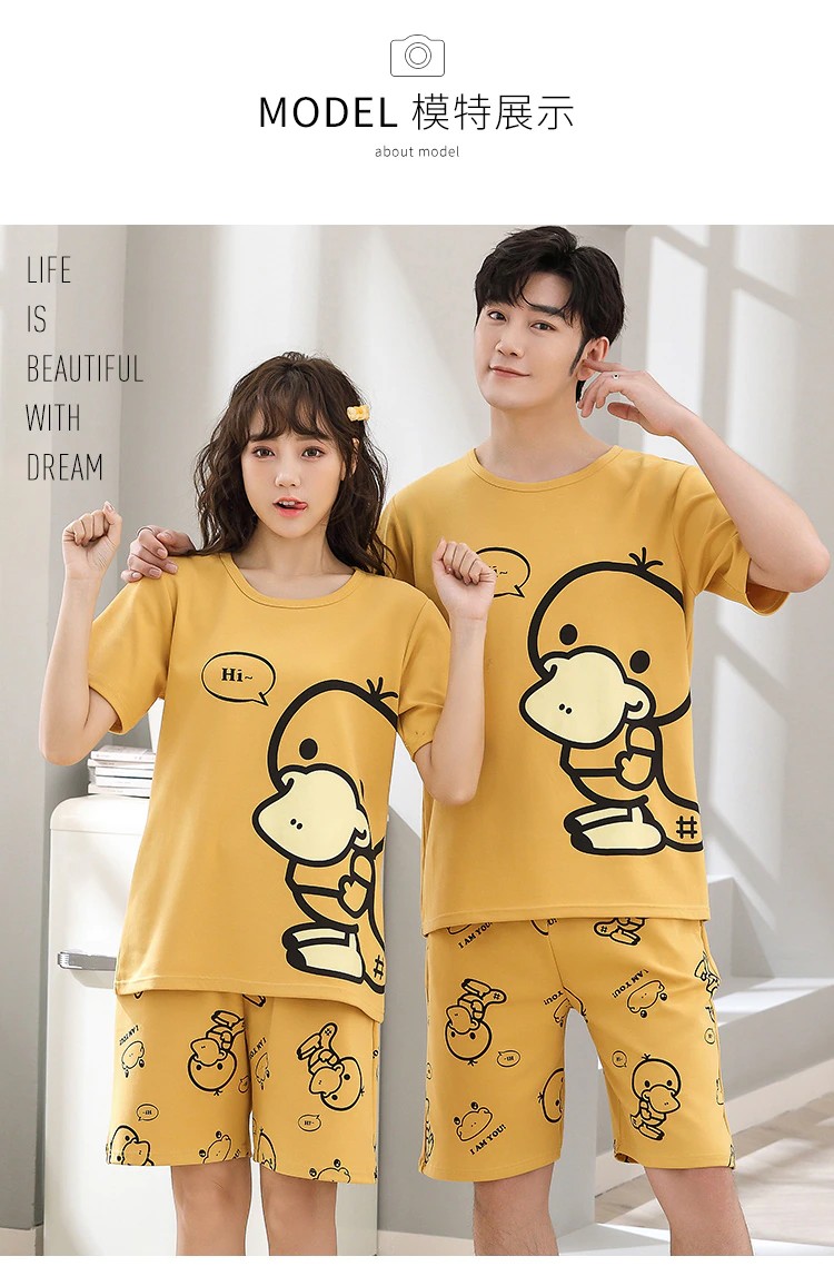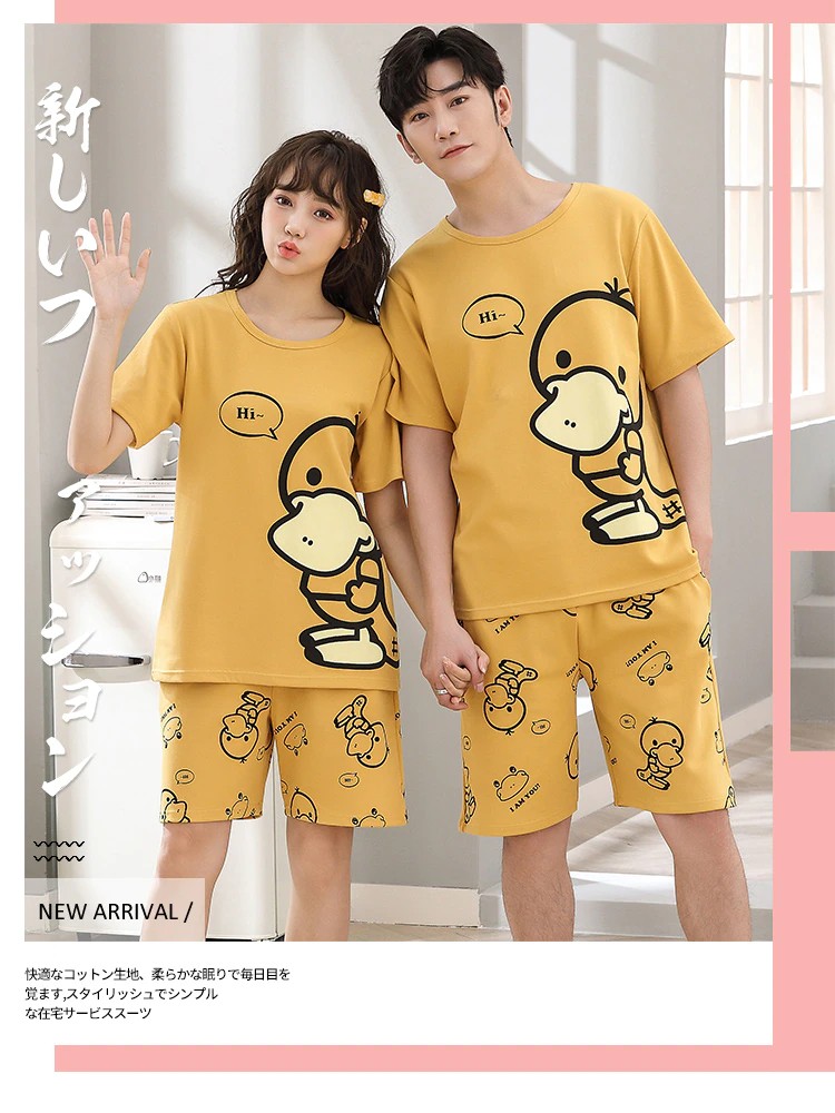 Verão De Malha Algodão Dos Desenhos Animados Pato Impressão Pijamas Conjuntos Para Casais Ternos Curtos Jovens Amantes Pijamas 4Xl Homewear Moda