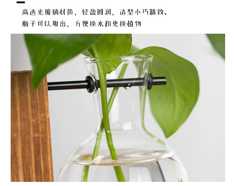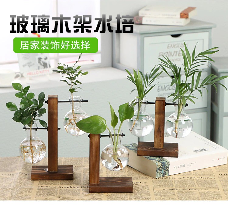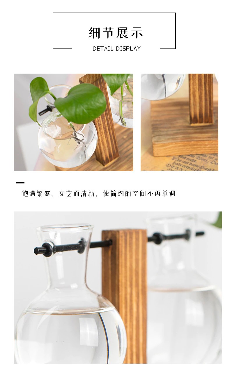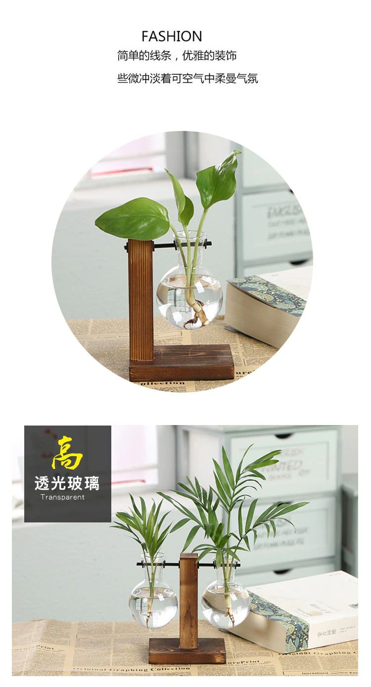Vaso De Plantas Hidropônicas Terrário, Vaso De Flores Vintage, Vaso Transparente Moldura Madeira Mesa Vidro, Decoração De Bonsai Para Casa