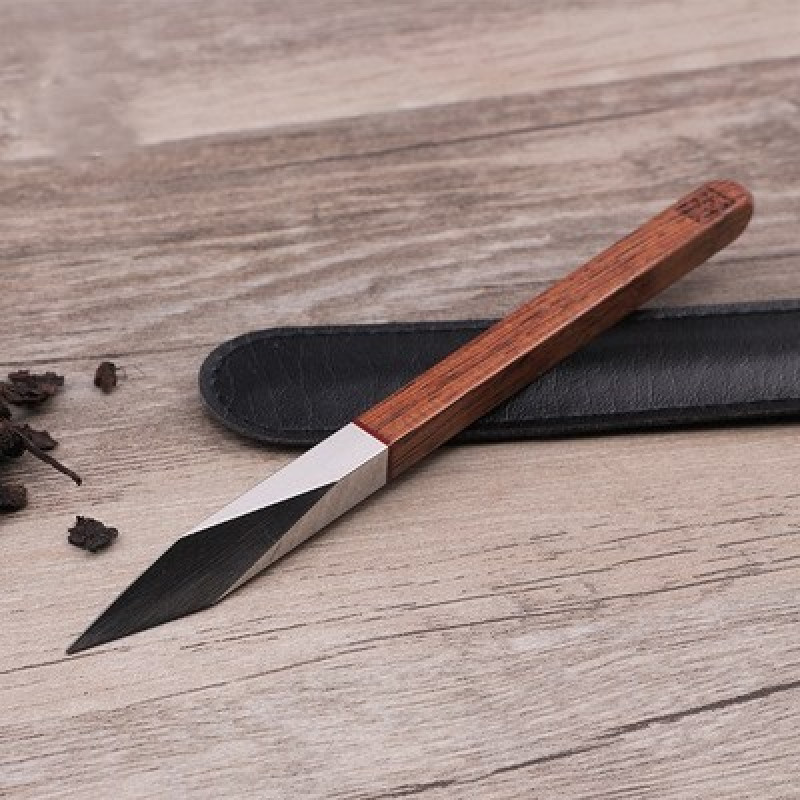 Faca De Chá De Aço Inoxidável Damasco Pu-Erh, Faca Chá Com Cabo Madeira Peças Cone Chá De Estilo Chinês Presente