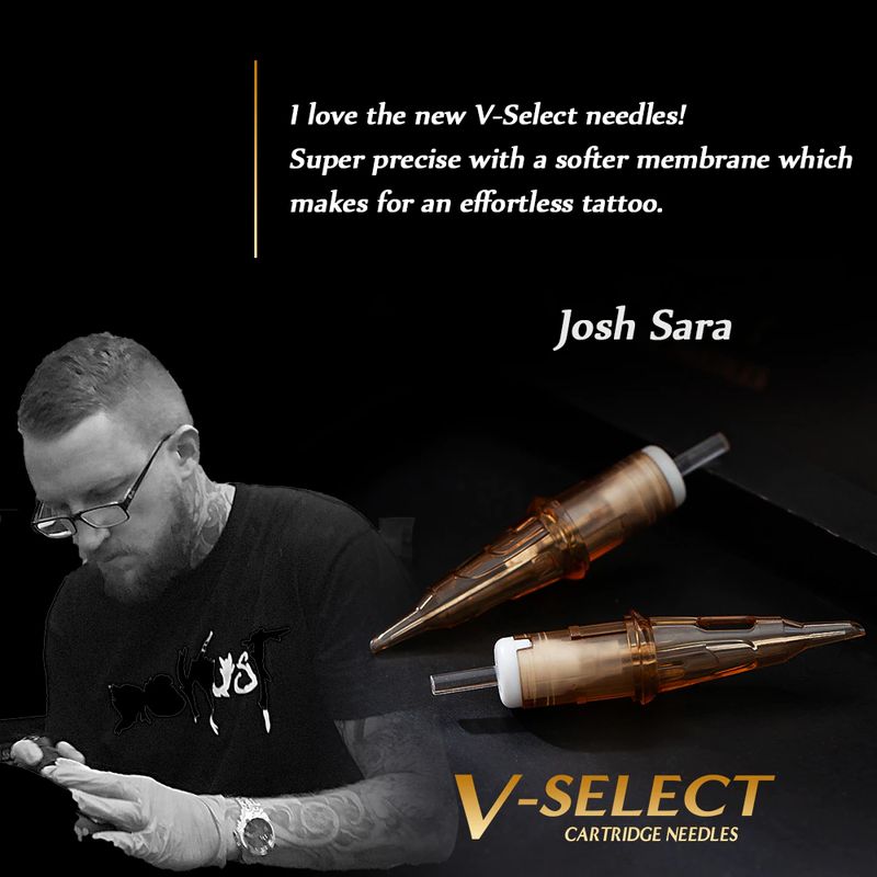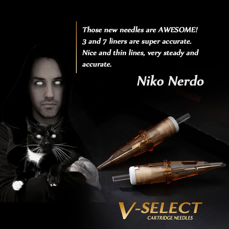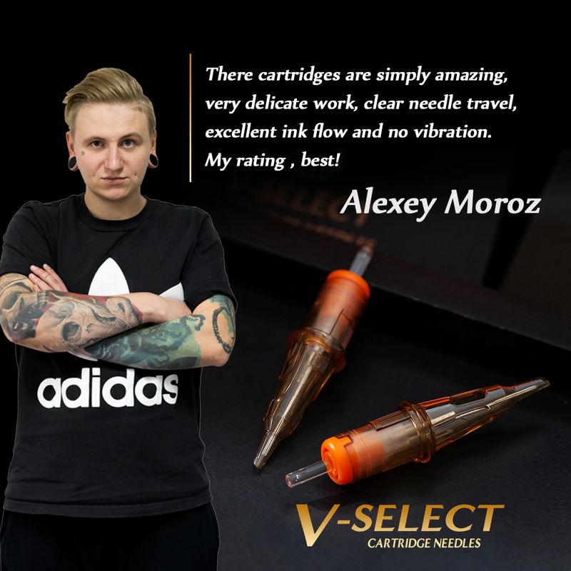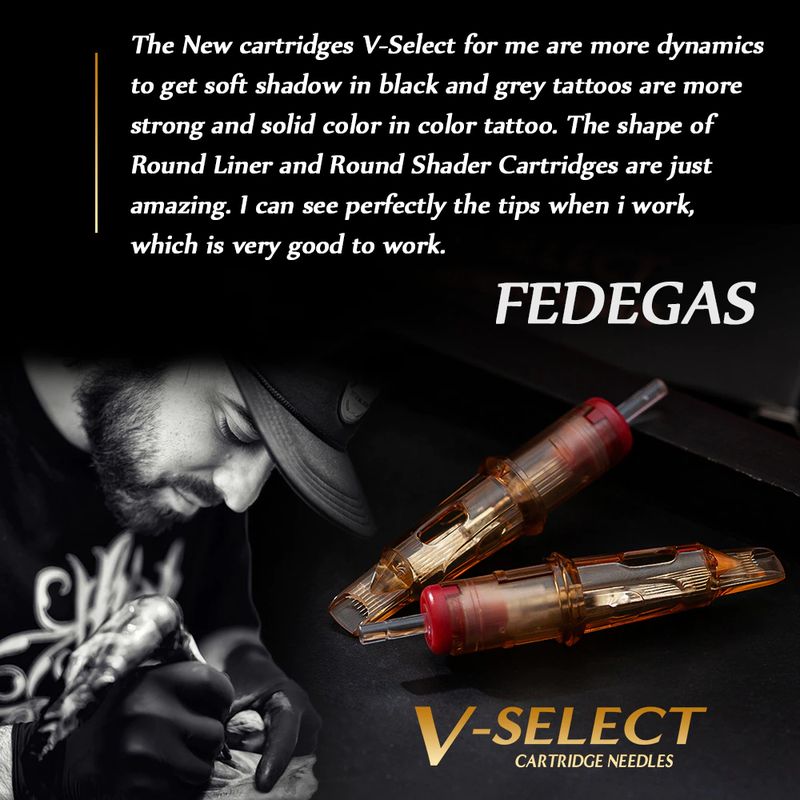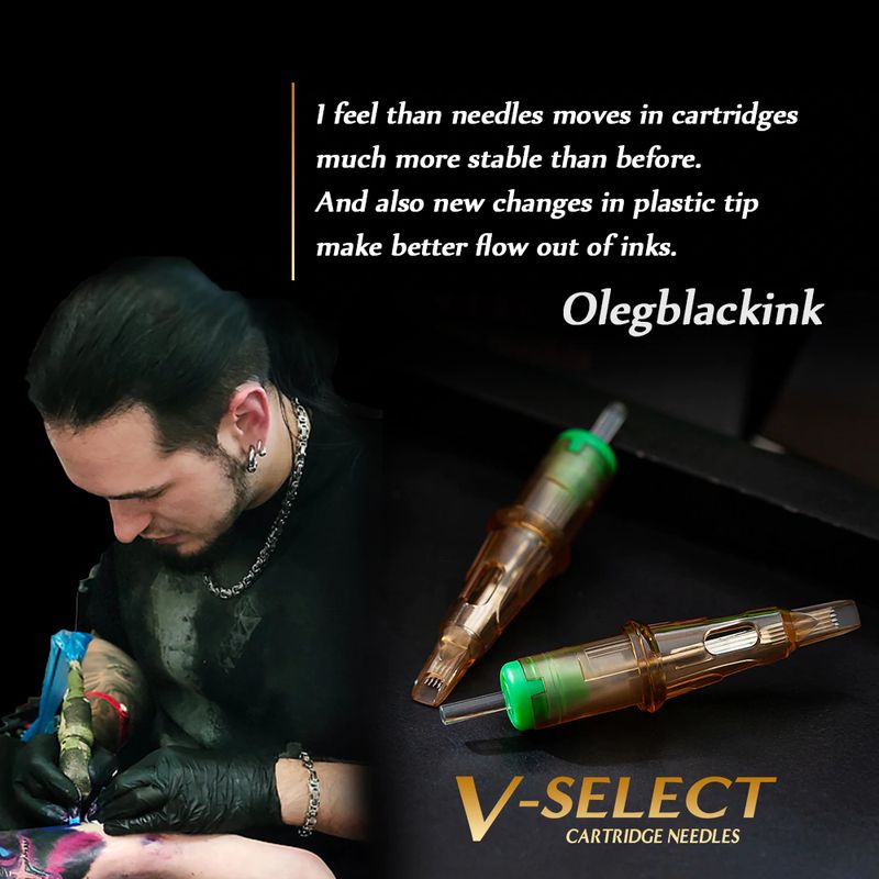 Alimentado pelo v-sistema, os cartuchos v-select características com sistema de posicionamento de precisão e membrana elástica para gerar o desempenho extremo para tattooing