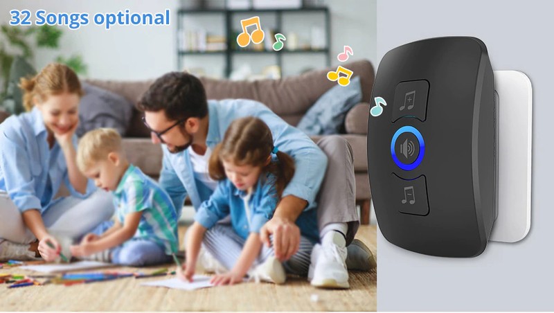 A campainha sem fio adota avançada tecnologia de recepção e despacho sem fio, poderoso sistema de controle de microcomputador, alta capacidade e tecnologia de processamento de voz superior, até 32 músicas com desempenho confiável e estável.