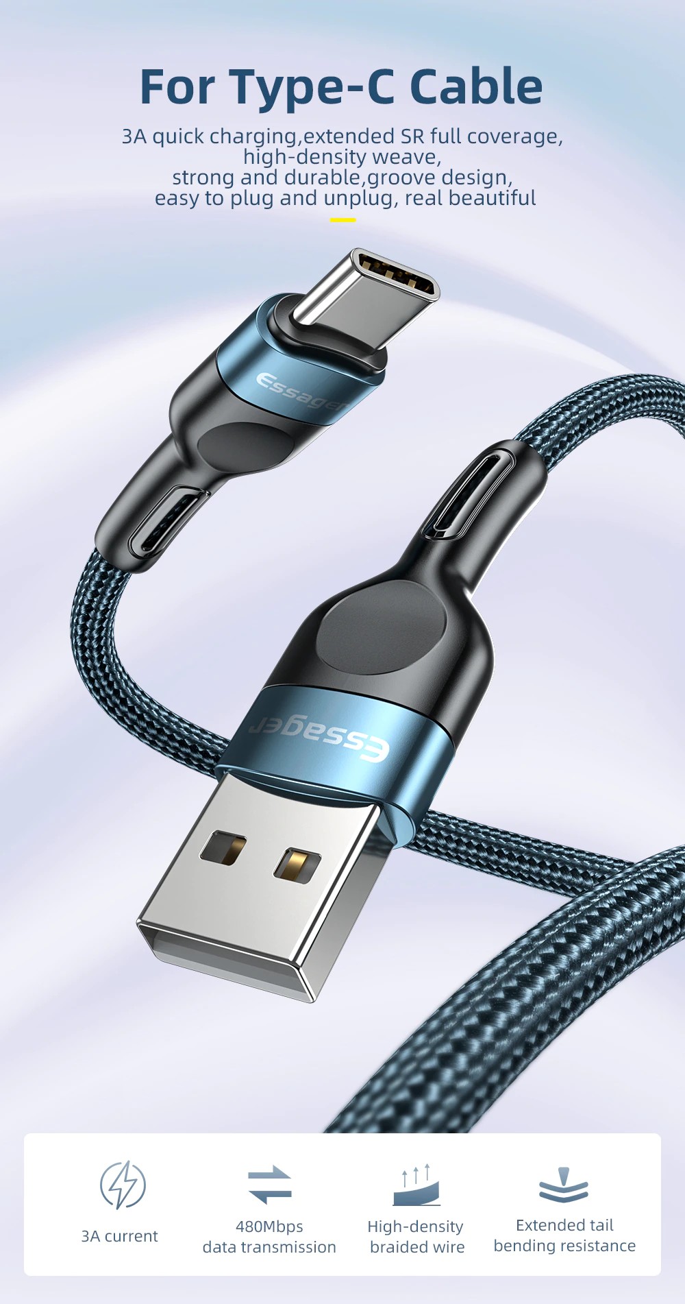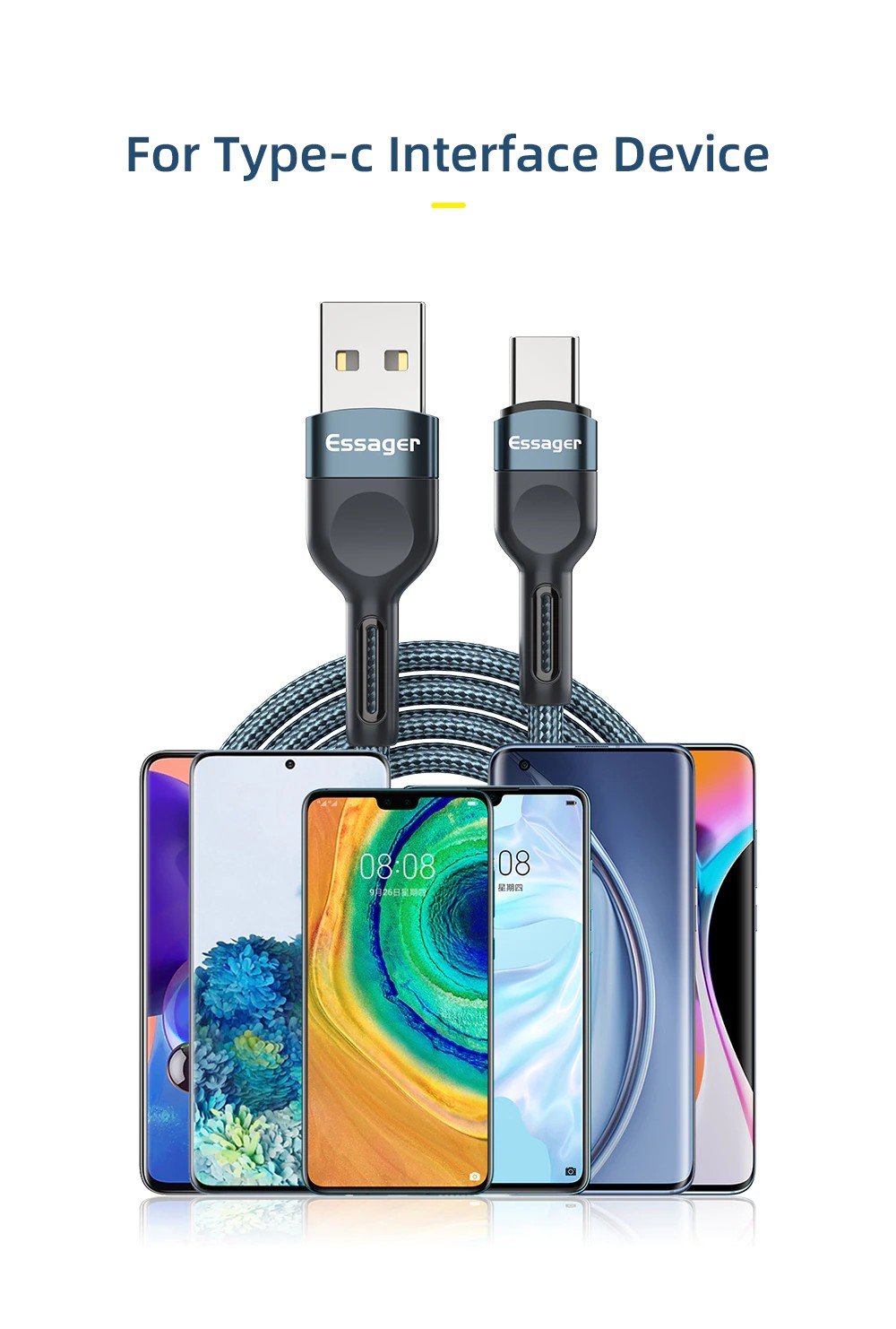Essager Usb Tipo C Cabo Para Samsung Xiaomi Mi 3A Carregamento Rápido Usb-C Cabo Carregador Do Telefone Móvel Usbc Tipo-C Cabo De Fio De Dados 3M