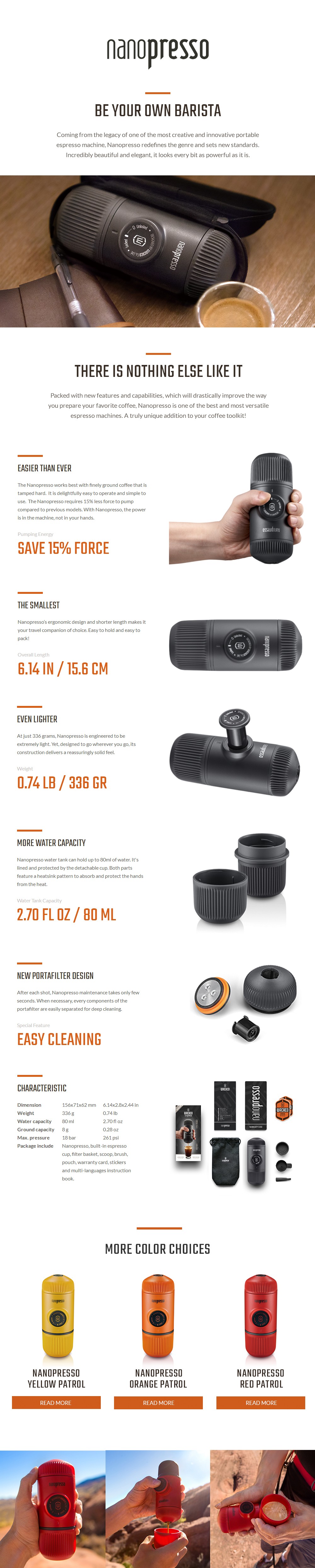 Wacaco Máquina De Espresso Portátil, Nanopresso, Versão De Atualização Minipressão 18 Bar, Cafeteira Extra Pequena De Viagem.