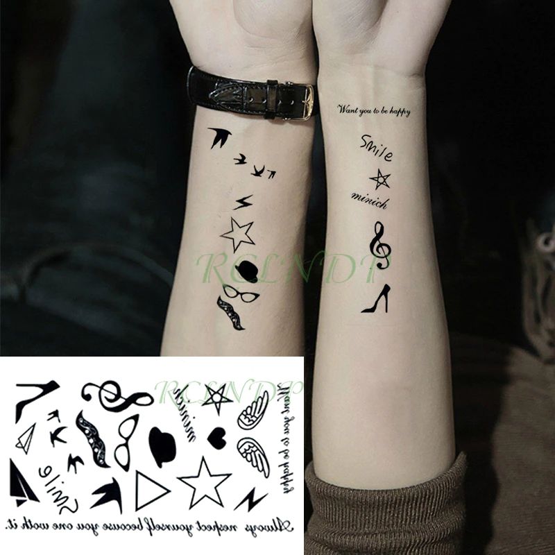 Adesivo De Tatuagem Temporário À Prova D'Água, Adesivo Preto, Palavra Anjo Diabo Touro Cruz Letras Em Inglês Flash, Tatuagem Falsa Para Mulheres E Homens