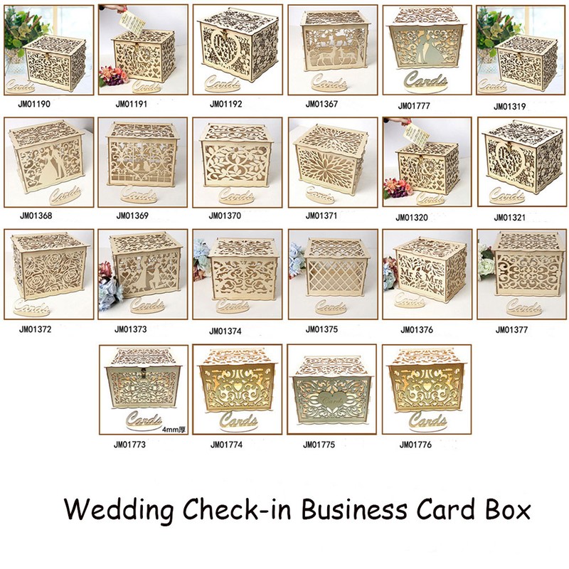 Caixa De Madeira Para Cartões De Casamento, Casal, Cervo Pássaro Flor Grade Cartões Visita, Caixa De Madeira
